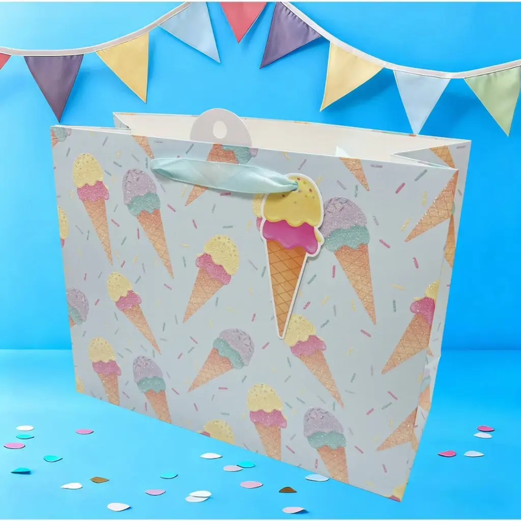 Scoop up some sweetness with this playful ice cream-themed gift bag filled with shimmering iridescent glitter and colorful confetti accents.The best part? It comes with a fun ice cream-shaped hang tag—ready for your handwritten note or name.