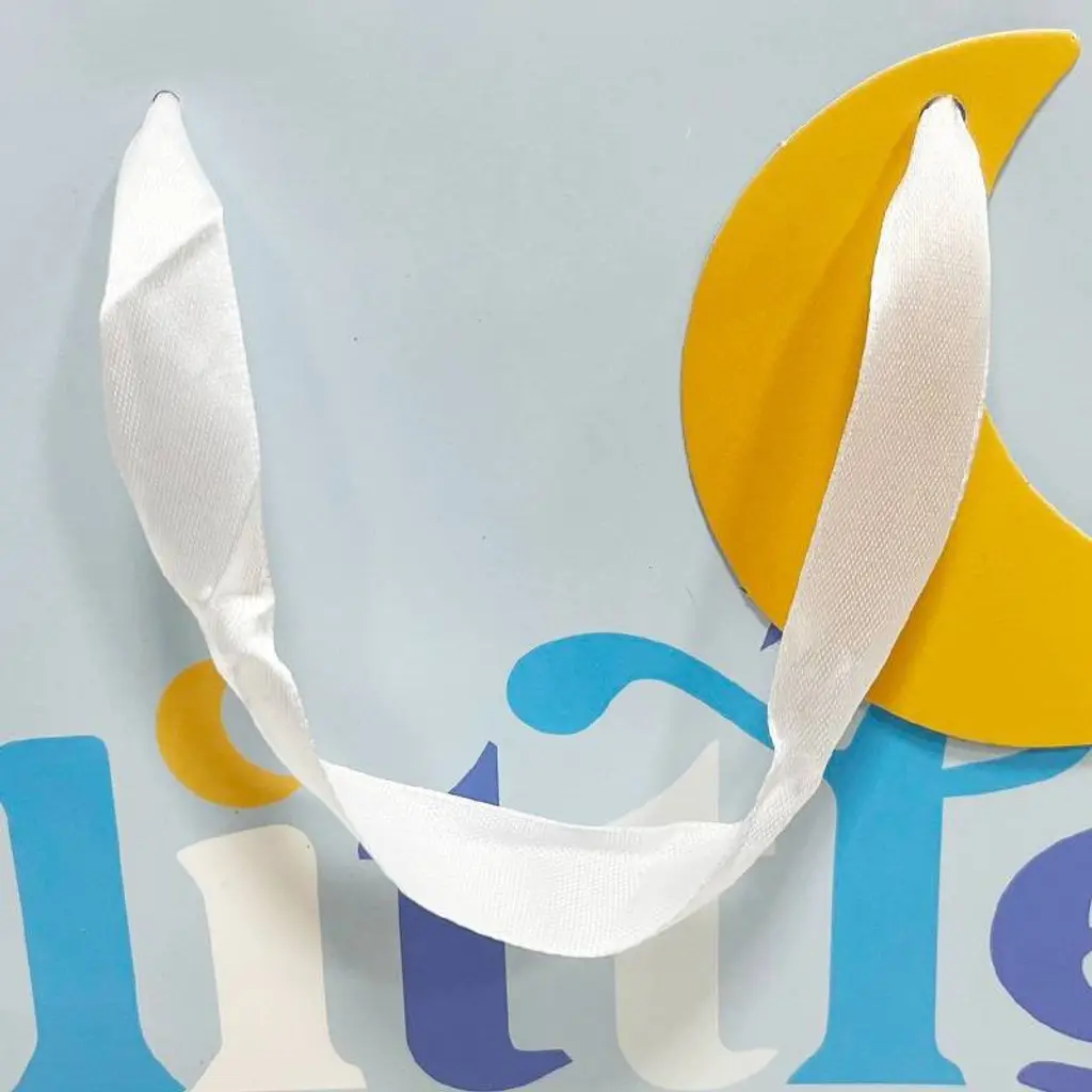 Make your gift stand out with this adorable Little Man gift bag.Crafted in soft, dreamy hues with charming cosmic touches, it features elegant lettering that proudly announces "Little Man” with delicate Moon shaped hang tag that dangles like a lullaby in motion, perfect for writing a loving note.