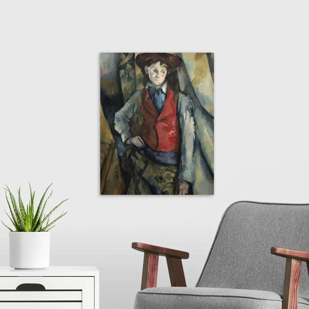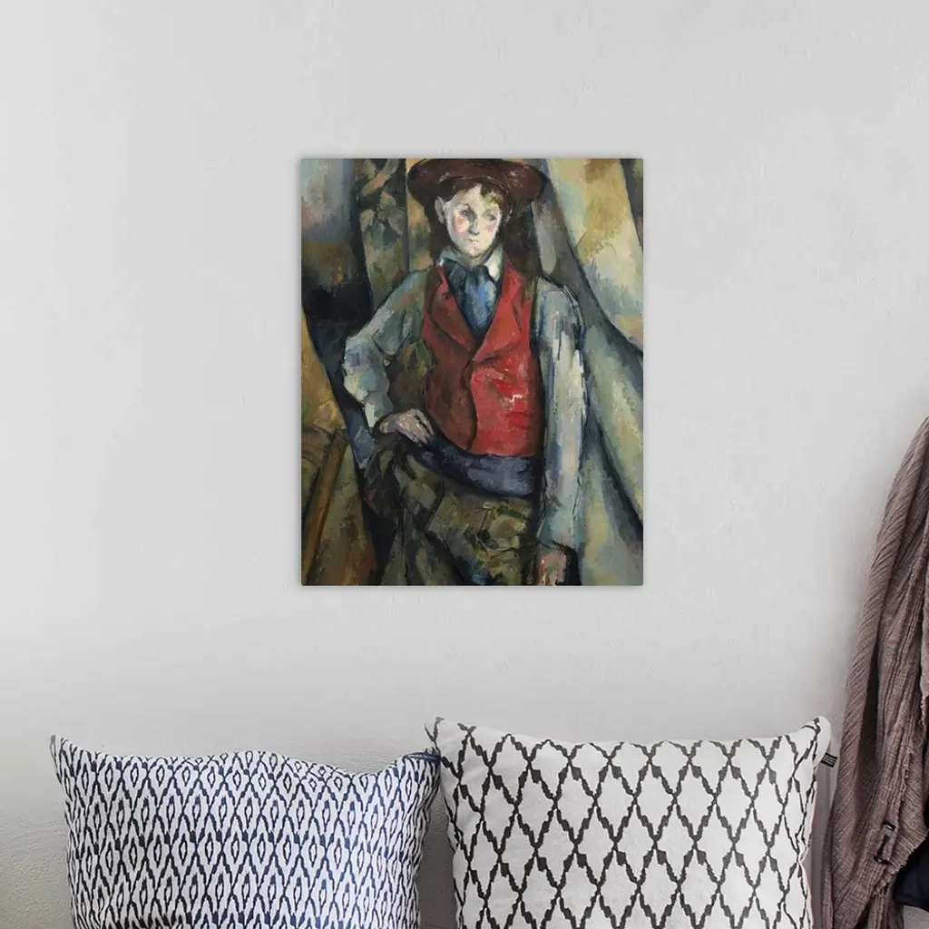 Boy in a Red Waistcoat, 1888-90, oil on canvas. By Paul Cezanne (1839-1906).
