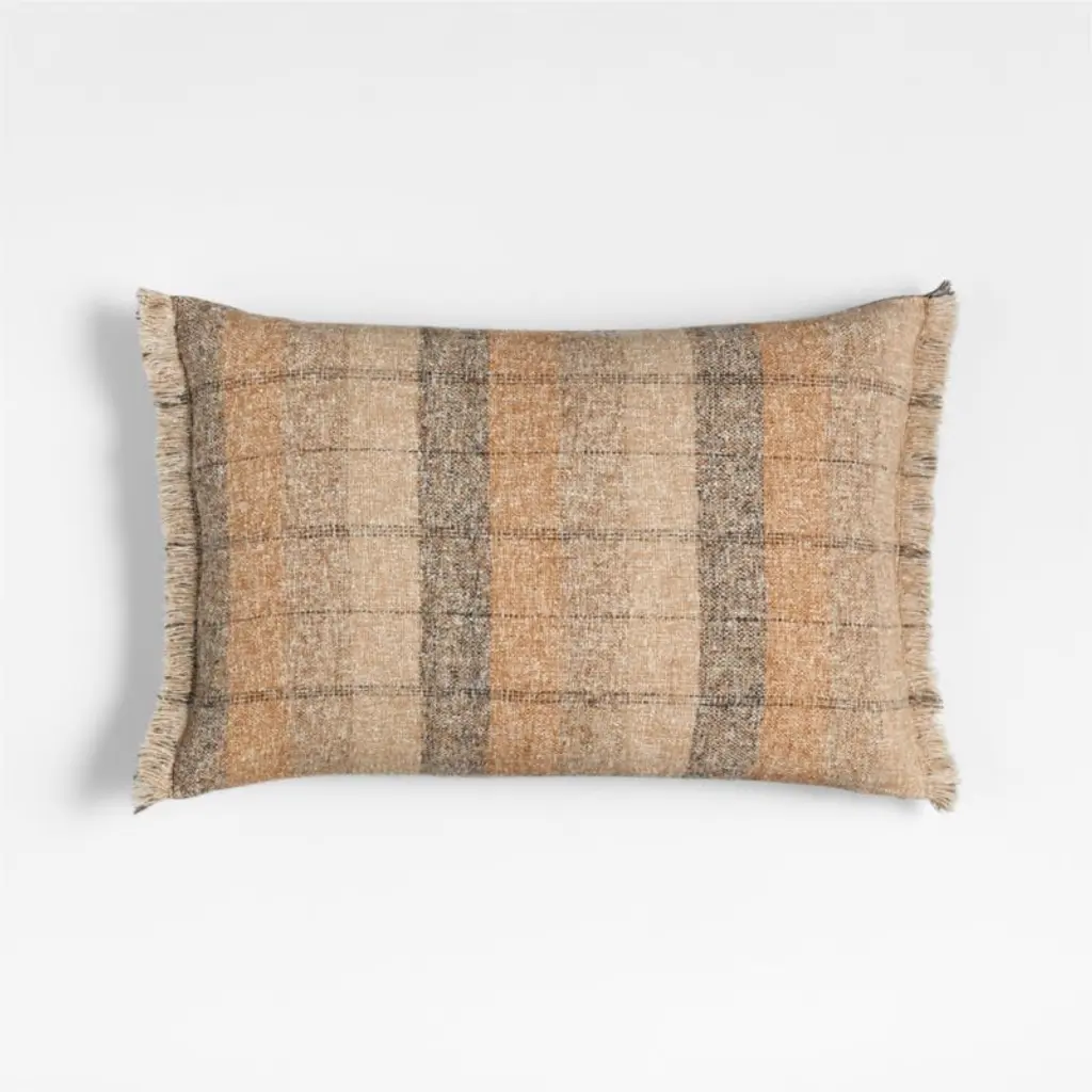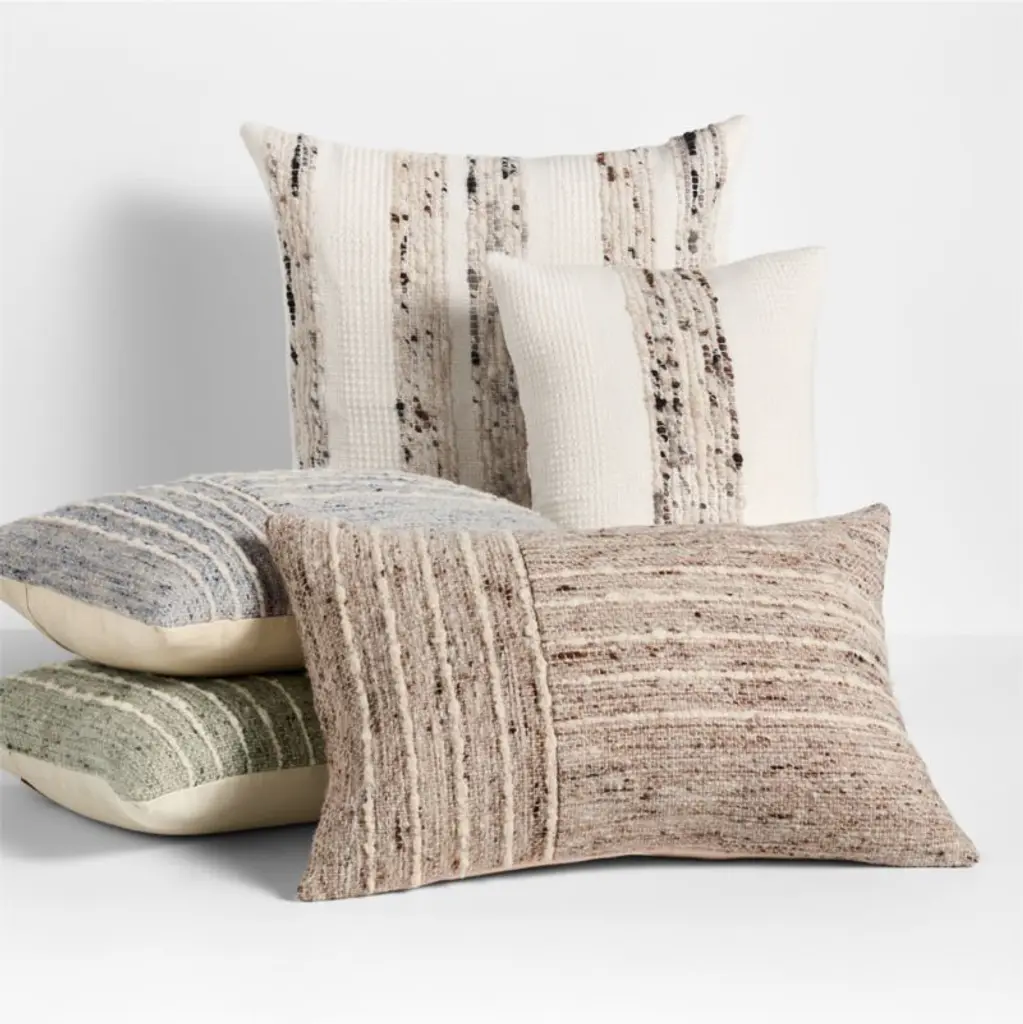 Inspired by our bestselling Bozeman rugs, this pillow boasts the same irresistible coziness. A blend of responsibly sourced wool and cotton weaves a nubby slub we adore, with multidirectional ivory stripes layering on even more texture. The result is a dynamic take on a classic striped pillow that harmonizes effortlessly with other patterned throw pillows. Our exclusive lumbar throw pillow includes your choice of a plush feather-down or lofty down-alternative insert.