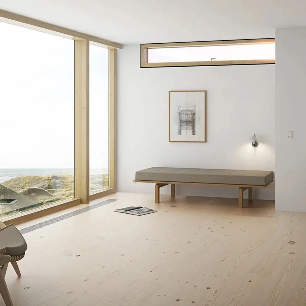 Daybed No. 115, inspired by classic Danish furniture design and simplicity, features a base of solid wood with an upholstered cushion. The daybed appears to float above the legs, while the cushion enhances comfort and relaxation. The key word around the design is quality, comfort and simplicity. The hand-sewn buttons on the cushion create a simple square pattern and highlights the daybed's geometric form. The daybed is available in two sizes (70x200 cm. and 90x200 cm.) with an 8 cm. single-sided cushion made of a mix of cold foam, Waterlily® foam and fibre wadding; A form stable and environmentally friendly cushion with high elastic properties, which makes it a good choice for a comfortable daybed, but also an extra bed for overnight guests. Daybed base is also available as BPS117 Bedframe. Because of the many upholstering possibilities, the BPS115 daybed will fit perfectly into both private homes and public spaces. Cushion sold separately.