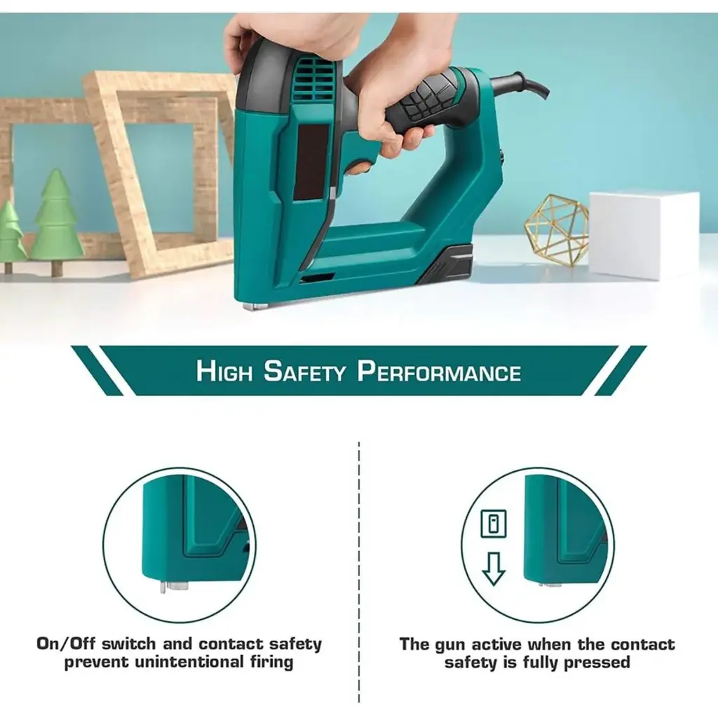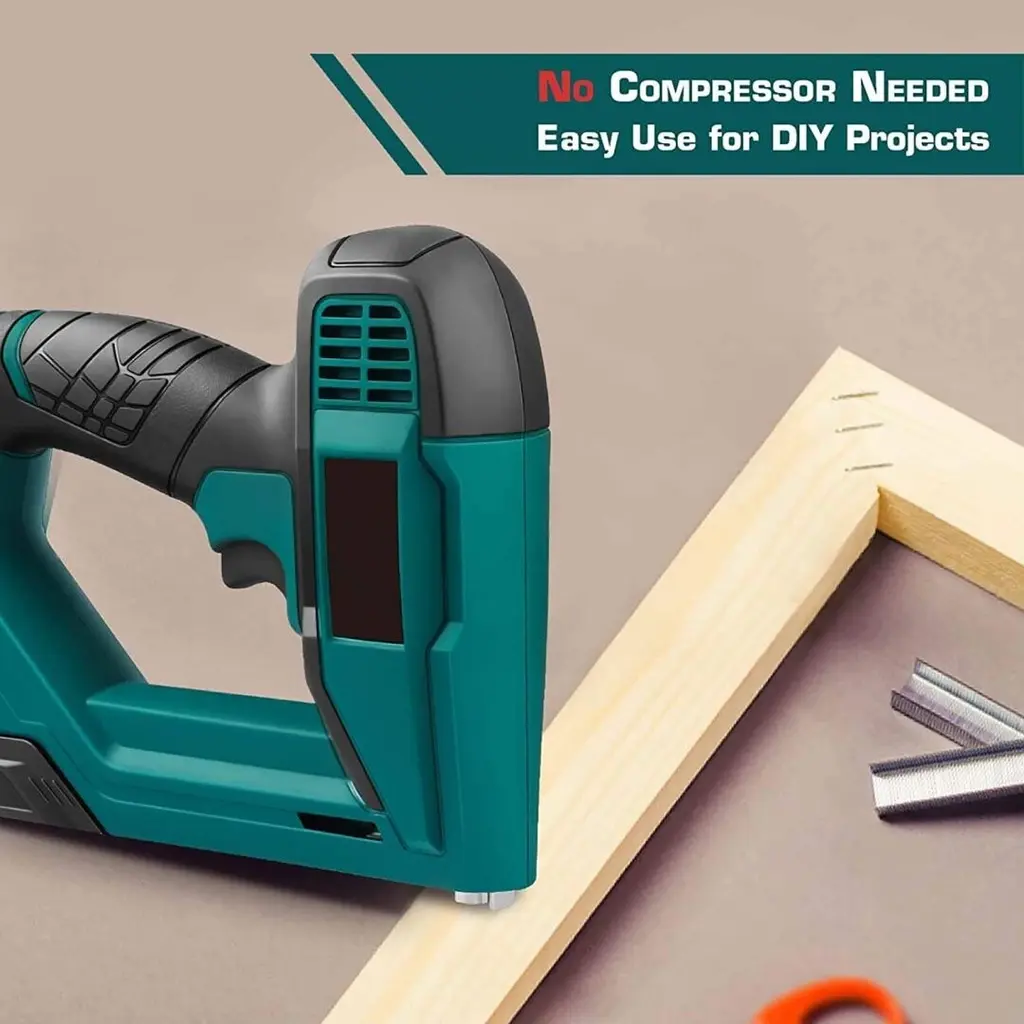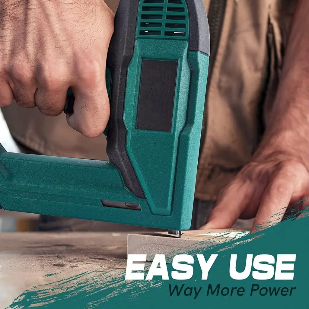 Product details 2-in-1 Electric Staple gun and Nail gun design for DIYers, ideal for many light-duty DIY projects. No compressor is needed and the nail gun features a quick-release mechanism and an over-molded grip for convenient use. Kit includes a Brad Nailer Stapler, 200pcs 5/8'' brad nails and 336pcs 3/8" staples. The versatile machine can operate as a stapler to finish some projects such as thin ceiling tile and carpet padding installation and as a nailer to finish some projects such as shelving, trim molding installations The versatile 2 in1 brad nailer/stapler - Due to staples and brads that the corded nail gun and a staple gun is compatible with, there are numerous applications for this tool such as general repairing, installing sheets of insulation and attaching lightweight trim, etc.More efficiently - The lightweight tacker can drive 30 shots per minsIt is more convenient/efficient to get the job done that the viewing window can show the quality of the nails and the time to refill the magazine.Selectable Power - Comes with power adjusted knob, it's easy to improve the work efficiency by adjusting the nailing strength according to the needs of the work. Specification: Item Weight: 4.4 ounces Product Dimensions : 8.66 x 2.36 x 7.09 inches Grip Type : Over-molded Grip Material Type : Plastic Number of Fasteners : 600