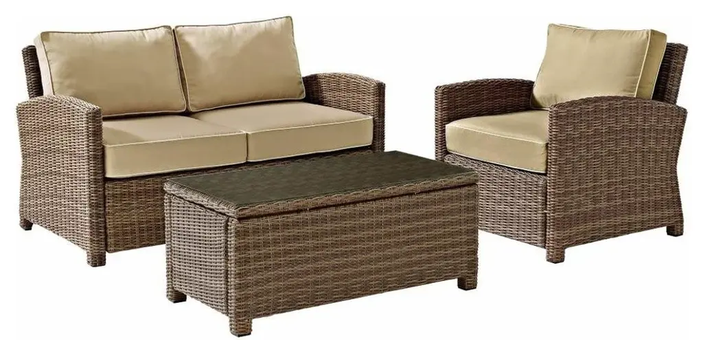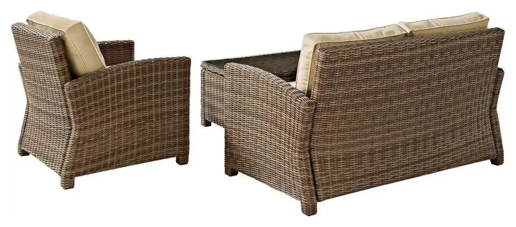 Bradenton 3-Piece Outdoor Wicker Seating Set With Cushions, Sand