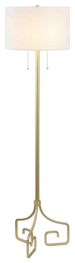 Chic and sophisticated, this posh, contemporary Bradley Floor Lamp instantly updates any living room with its stunning sculptural style. Its sinuous curves are illuminated with a luxurious antique brass finish, and its off white 100% cotton shade is complementary.