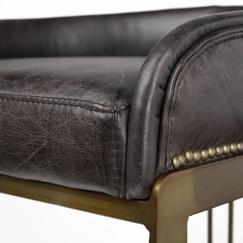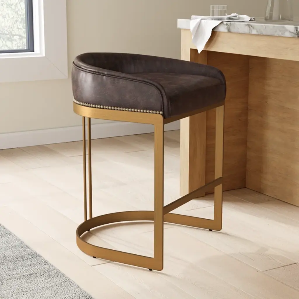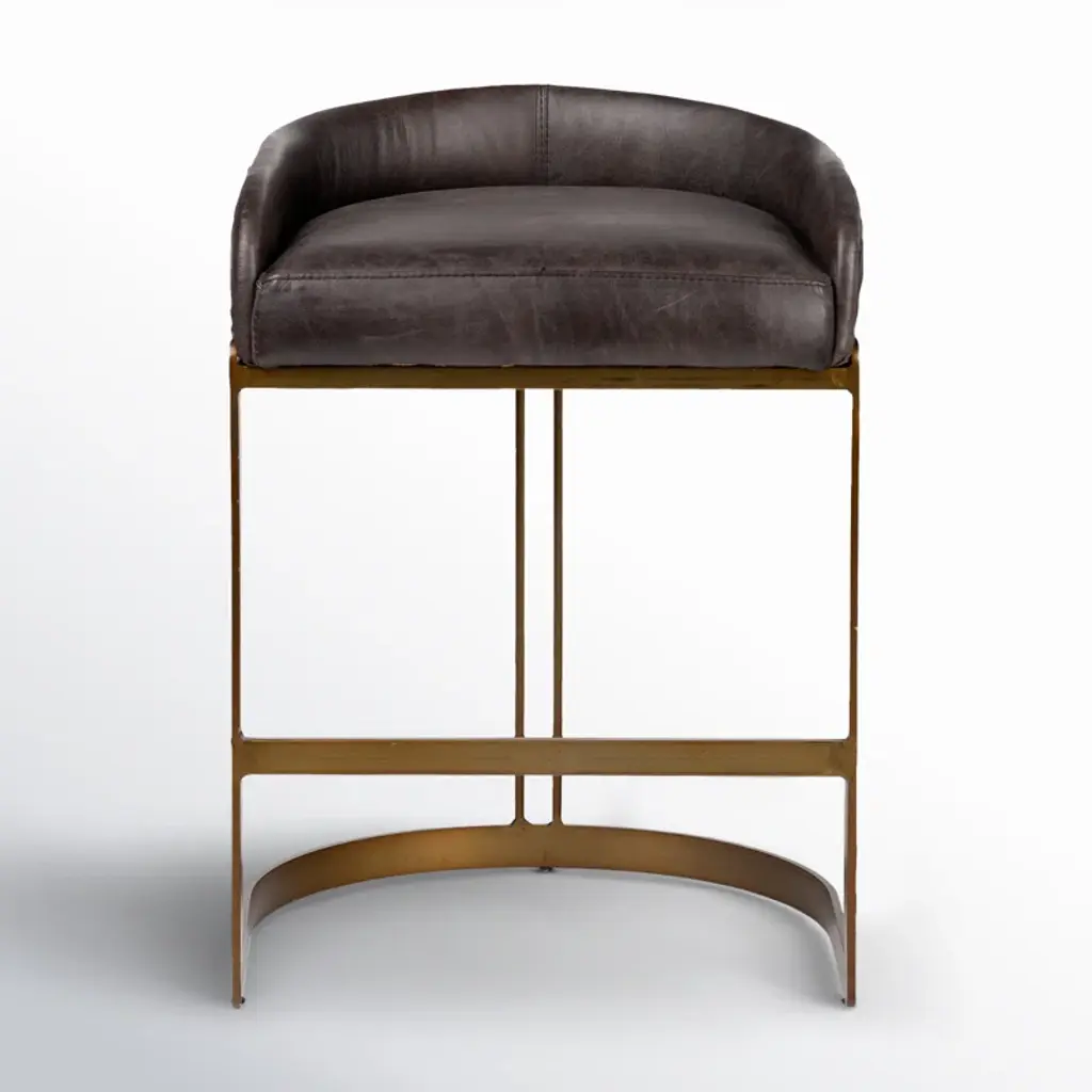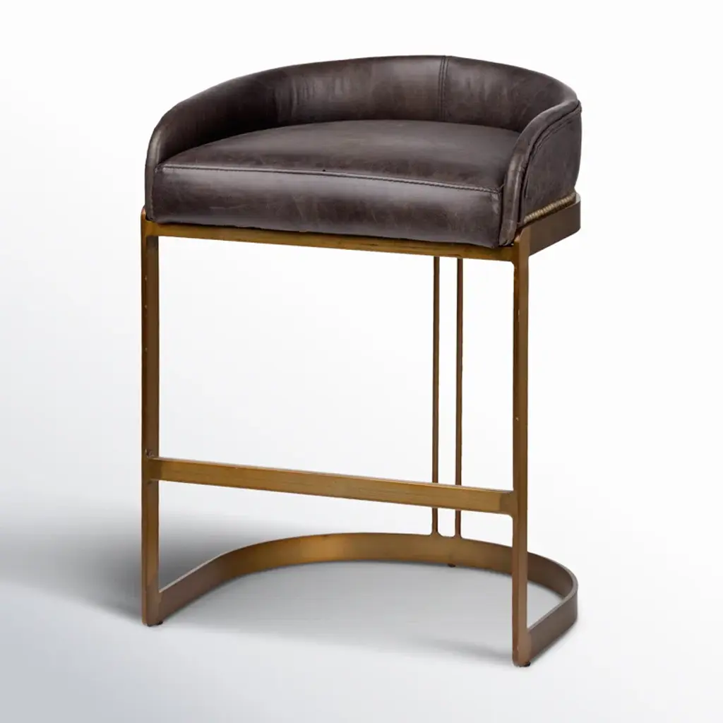 Pull up a seat. Our low-back stool is wrapped in genuine leather that is easy to maintain and ages beautifully. It features a metal sled base with a brace that serves as a footrest. We love a well-padded bucket seat for its comfort and support. Consider multiples to line your kitchen counter or island.