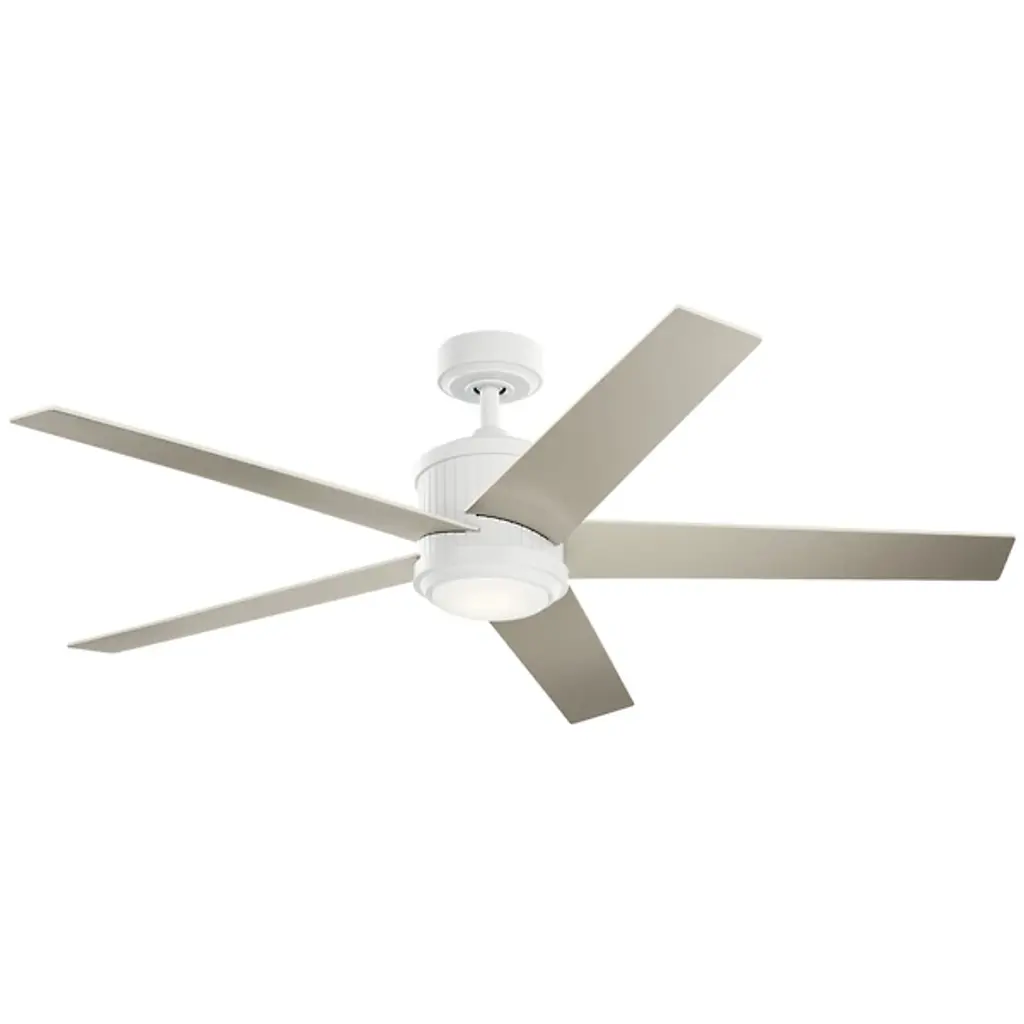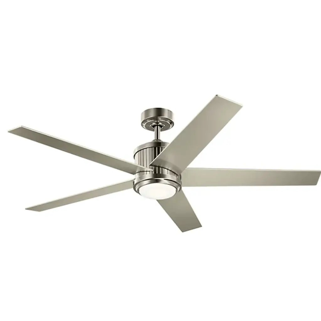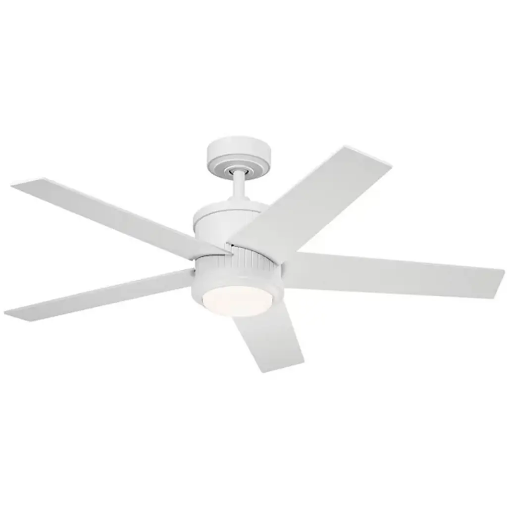 Play a symphony of style in your indoor living spaces with the subtle, stylish lines of the Brahm LED Ceiling Fan from Kichler. A stylish sample able to work well with a range of décor styles, it’s suspended from a circular canopy and short downrod, and inspired by a wooden table from Texas, uniquely styled with a vertically ribbed central housing. Five slender, wide-reaching blades extend outward from a central housing set around its motor and lamping, while an integrated LED lamp blasts out through a diffuser of satin etched opal glass to provide a soft wash of elegant downlight.