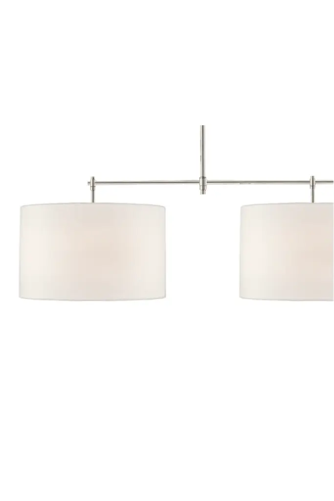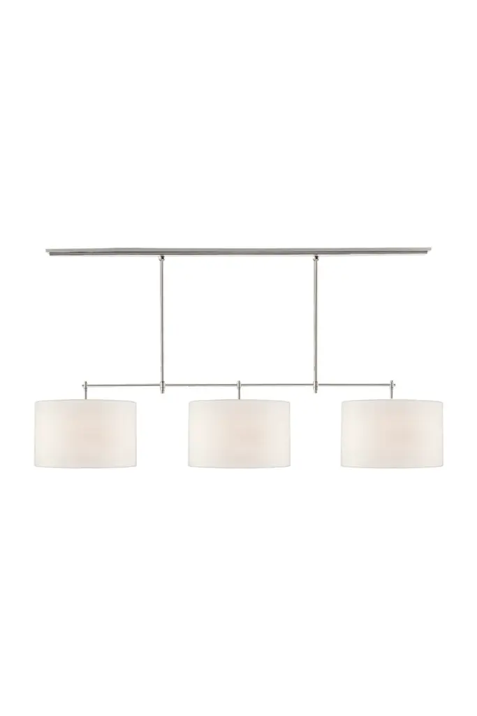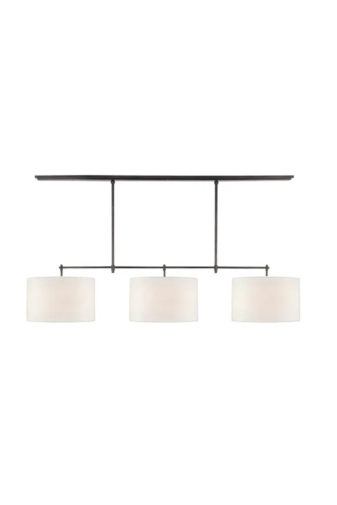 A billiard light in antique brass with three natural paper shades and an interesting linear silhouette. Crafted by iconic designer Thomas O'Brien, place Bryant over a dining table to add some modern industrial chic into your home. Available in two sizes. - Gold, Bronze, Silver