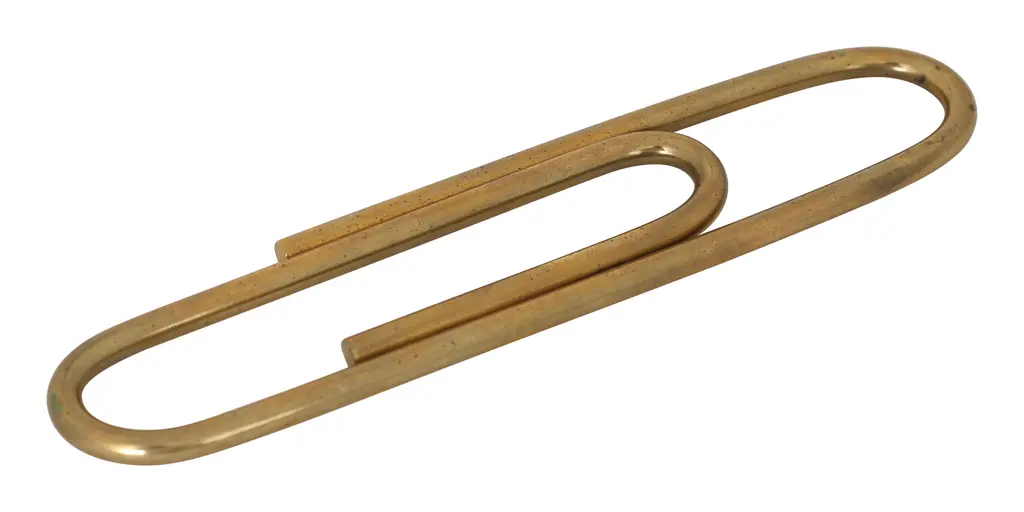 Bring a touch of subtle shine to your workspace with our Brass Oversized Paperclip. This clever desktop accessory is crafted form antiqued brass, shaped to resemble a scaled-up version of a classic office essential. Perfect for keeping documents tidy at your WFH set up, we also love it as a charming paperweight or as a curious addition to a tabletop vignette. •antiqued brass Dimensions •6.5"W x 1.5"D x .25"H Unlacquered brass will naturally take on a unique patina over time. Let the process continue for a bit of timeworn, antique-inspired charm — or polish your piece regularly with a soft, non-abrasive cloth and your favorite brass cleaner to maintain its original shine.
