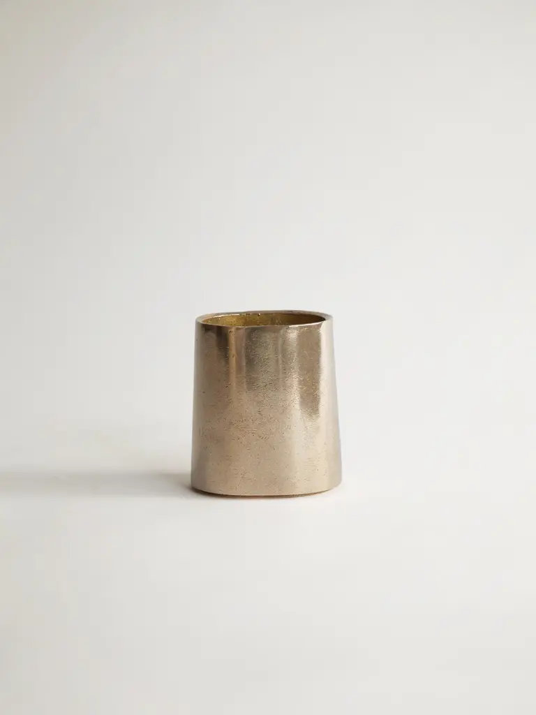 Brass Taper Pen Stand by Stem DesignDimensions: D 8 x W 10 x H 11 cm.Materials: Brass.Finish: Tumbled and burnished.Weight: 1,4 kg.Finished and assembled by hand in India. Also available in aluminum. Please contact us. An ellipse rising from a wide base, the Taper pen stand reveals its character through a simple and honest form. The surface reflects light beautifully and results in a subtle sheen, giving it the ability to add richness to any table setting and the objects it holds. The solid form available in aluminum and brass is imagined on a work desk, a night-stand, the shelves in the corridor, or a bar counter.The objects layers on as a metaphor and showcases the beauty of being who you are. It strips off all the layers of ornamentation and artificial finishes to build an immediate and intuitive connection with the product that lasts a lifetime.Stem is a contemporary Indian product design studio creating hand-crafted lighting and home accessories. Led by Aman Bhayana and Sugandhi Mehrotra, the studio’s philosophy revolves around storytelling, aiming to evoke a deep sense of connection with each product. Our vision is to create an immersive experience where art seamlessly integrates into everyday living. While honoring traditional craftsmanship, each piece is carefully hand-crafted, showcasing attention to detail and a sense of individuality. The designs are sustainably crafted to endure the test of time, gracefully aging with each passing year. These products become bearers of stories, connecting generations and serving as a source of inspiration throughout a lifetime.