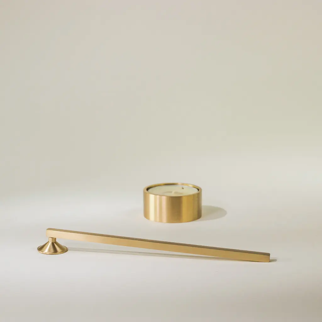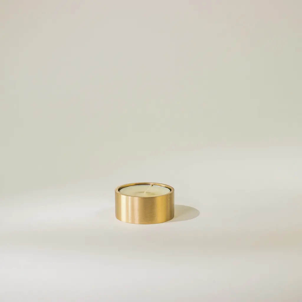 Our brass tea light cups are made with solid spun brass and add a mood to any setting. Comes with tea light candle snuffer. Tealight is spun in unvarnished brass. As times goes by, the brass will start patinating, making Tealight an ever-changing candle holder.