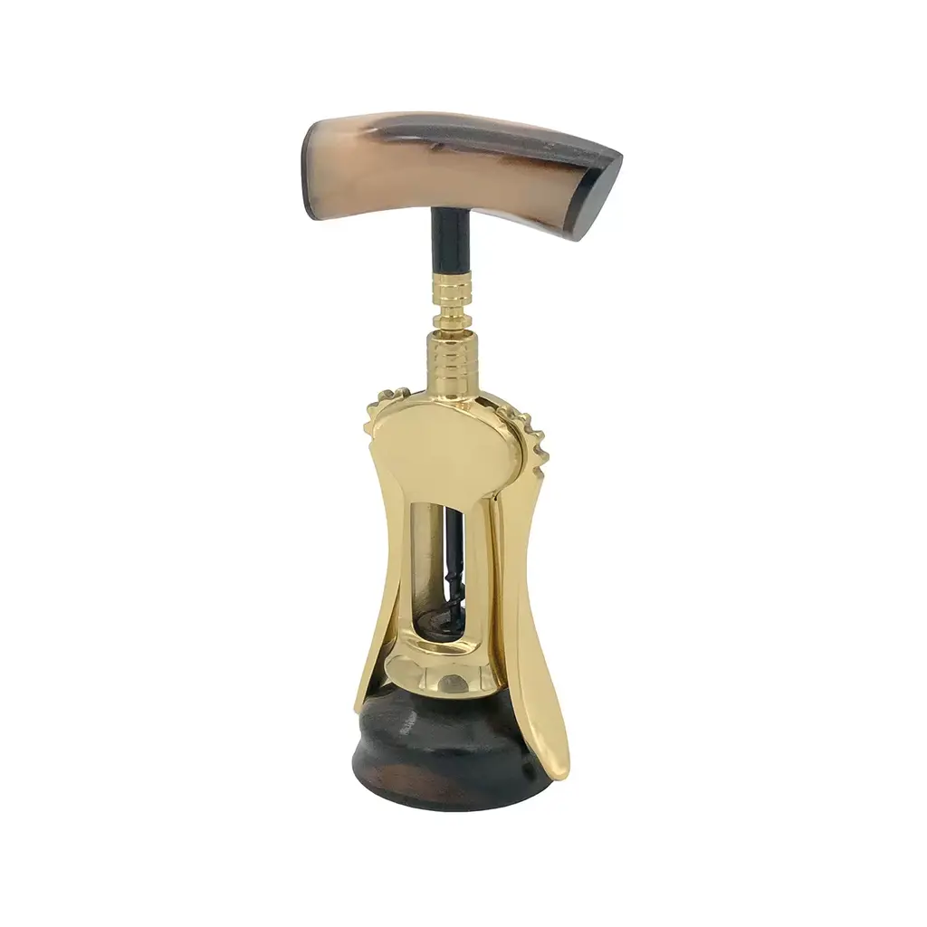 An essential for everyday entertaining gets a glamorous makeover in this brass winged corkscrew that will make a stunning addition to a refined bar cabinet and a precious gift for a wine lover. Sturdy and swift, this corkscrew features a base of Makassar ebony and a striking handle of genuine kudu horn with ebony profiles.