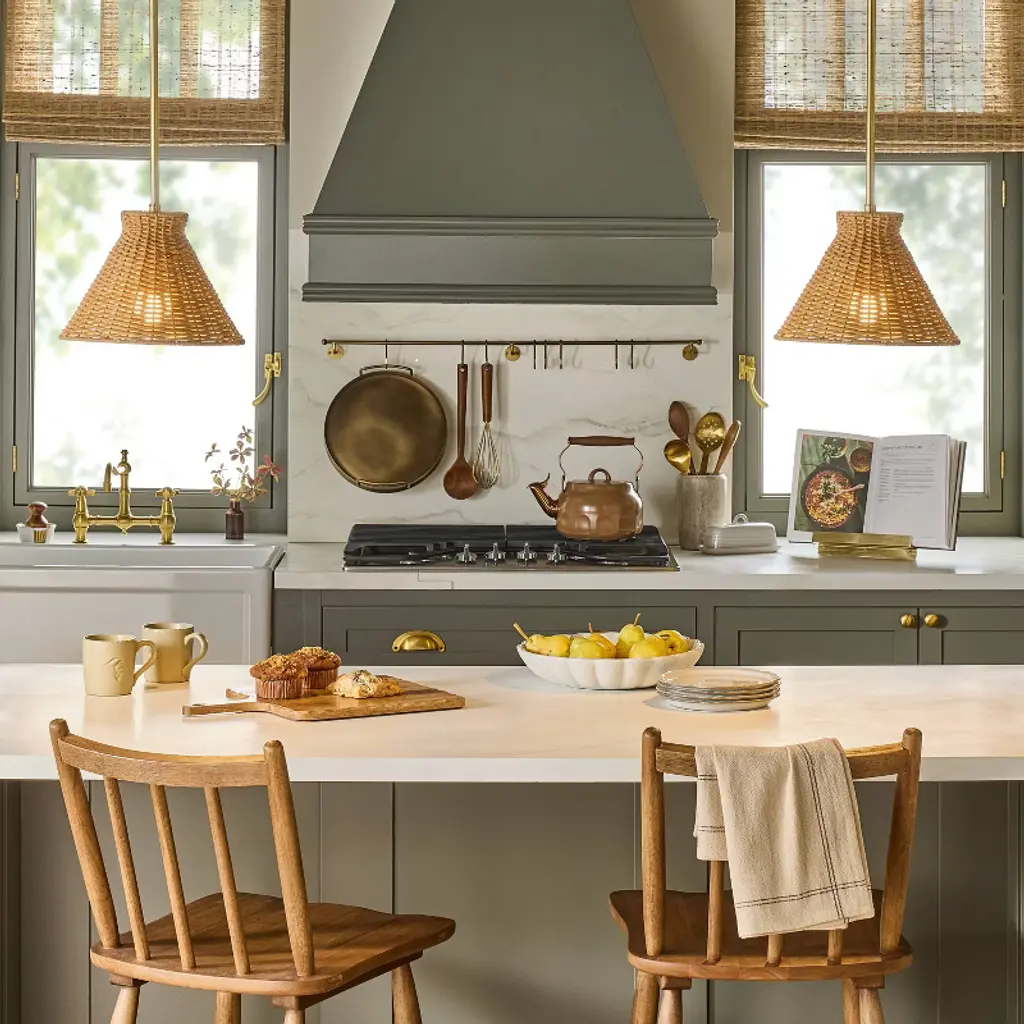 Bring an antique touch to your ceiling with the Brass with Rattan Shade Pendant Light from Hearth & Hand™ with Magnolia. This ceiling light is crafted from metal in an antique finish and features a cone-shaped rattan shade for an artistic appeal. It has an adjustable height to help you achieve the proper focus. Simply hang it above the kitchen counter or dining table to help create a beautiful space. Hearth & Hand™ with Magnolia: Gather • Create • Enjoy