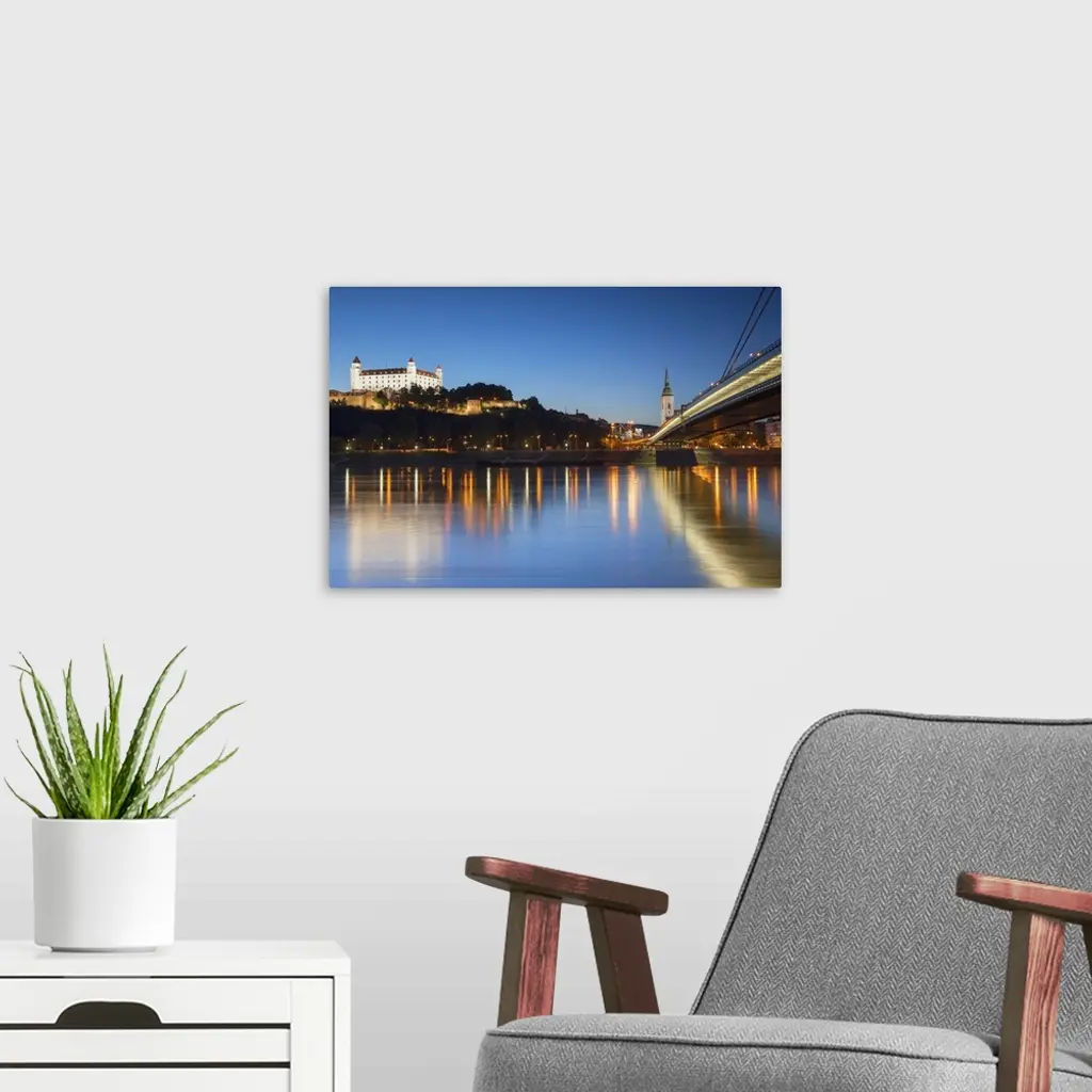 Bratislava Castle, St Martin's Cathedral And New Bridge At Dusk, Bratislava, Slovakia