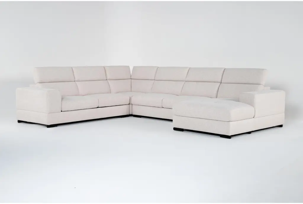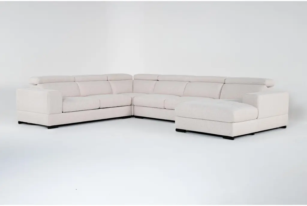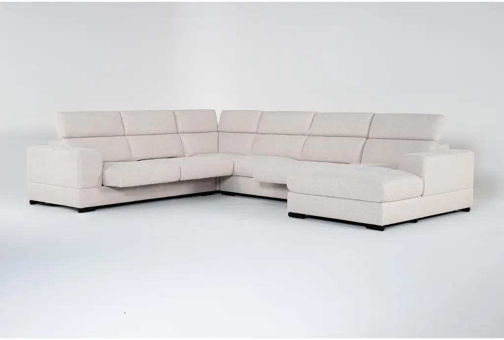 Braxton Cream 146" 4 Piece Manual Sliding Seat U-Shaped Sectional With Right Arm Facing Chaise & Adjustable Headrest