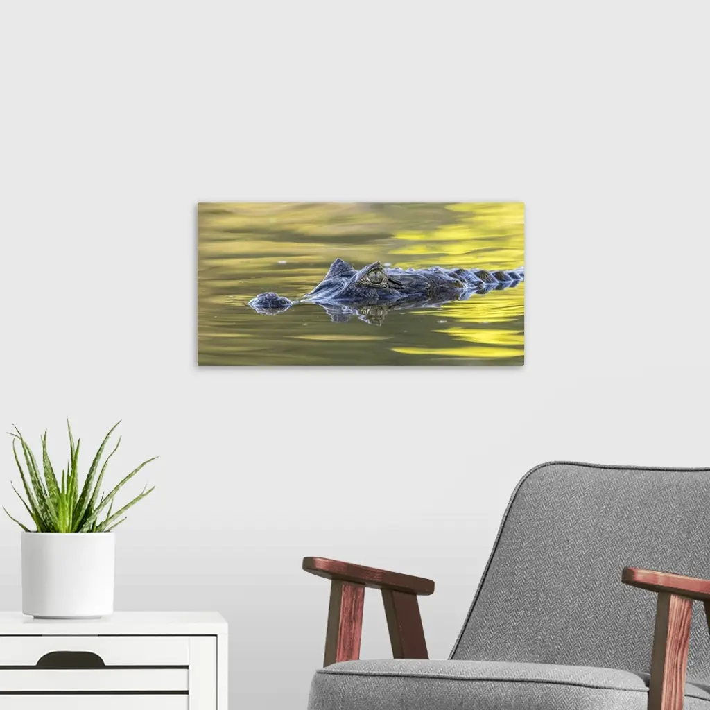 Brazil, Pantanal. Jacare caiman reptile in water.
