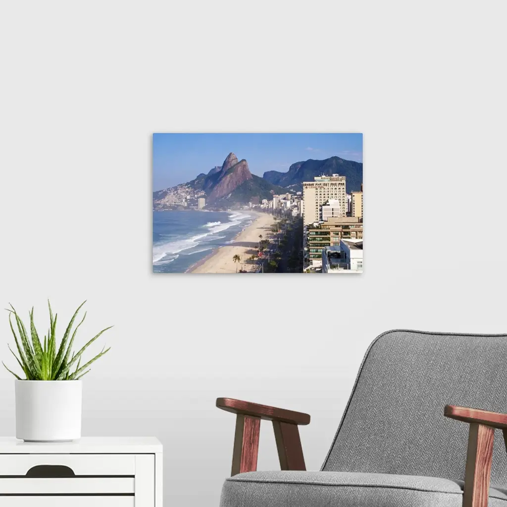 Brazil, Rio De Janeiro, Ipenema Beach And Two Brothers Mountain