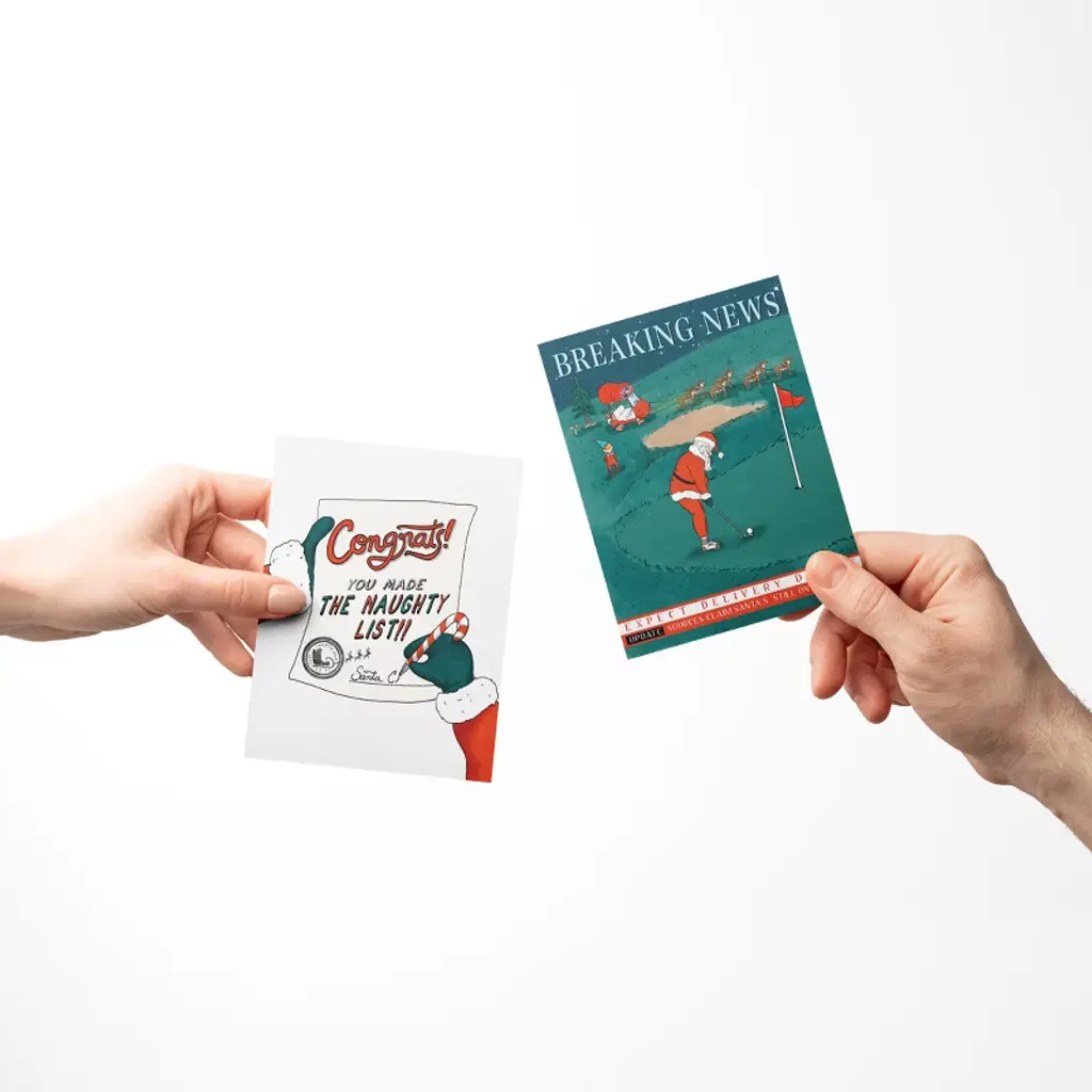 Breaking News Golf, Santa Nap, Naughty List Winter/holiday/christmas Greeting Card Pack Sets (3 Ct, Assorted) By Ramus & Co