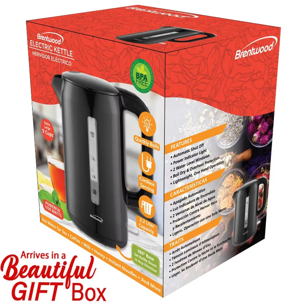 Brentwood 1,100-watt Cordless Electric Kettle With Concealed Stainless Steel Heating Element And Boil-dry Protection (2.2 L; Black)