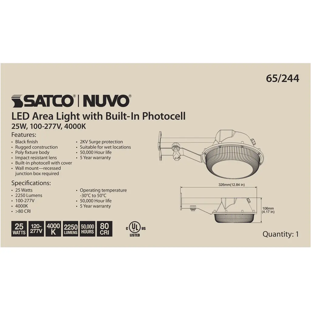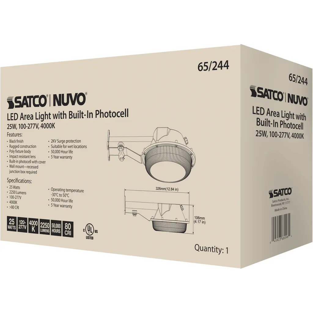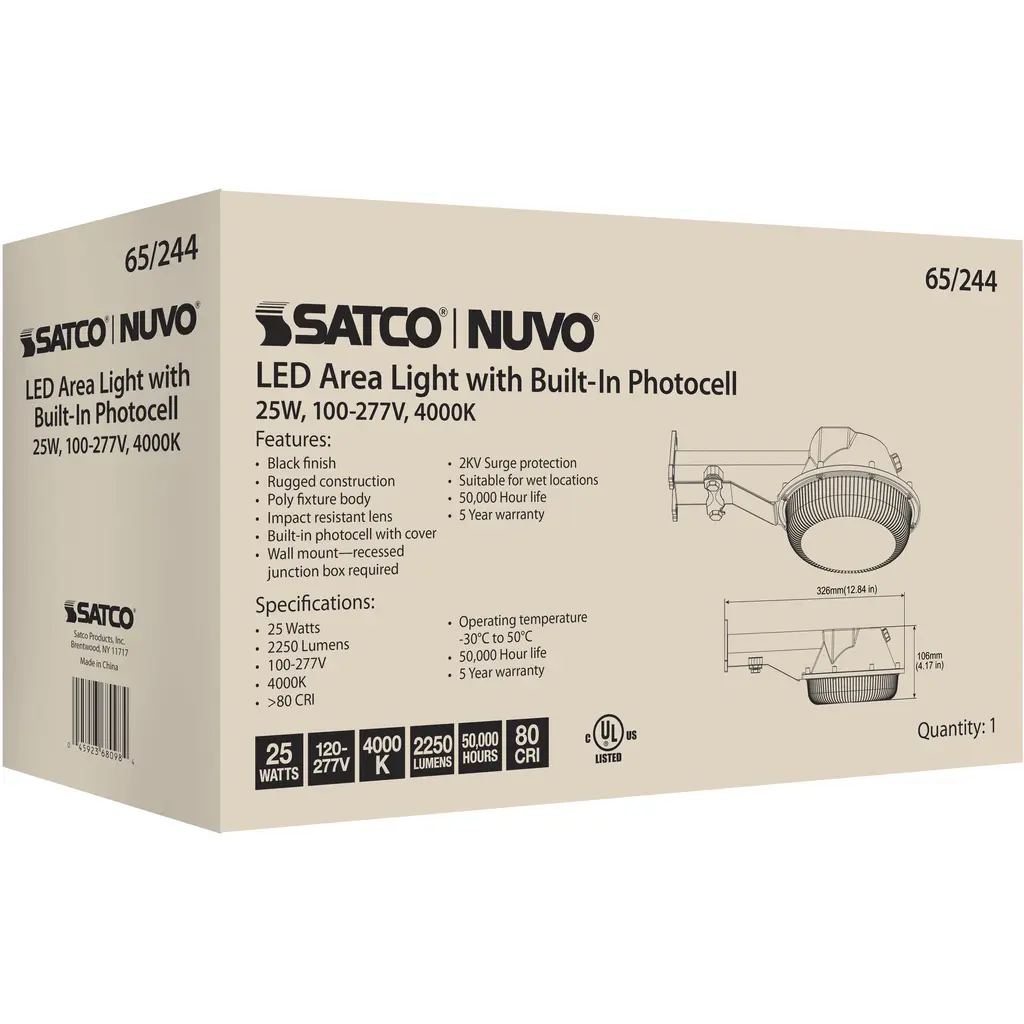 LED Area Light; 25W; Black Finish; 4000K; 120-277V