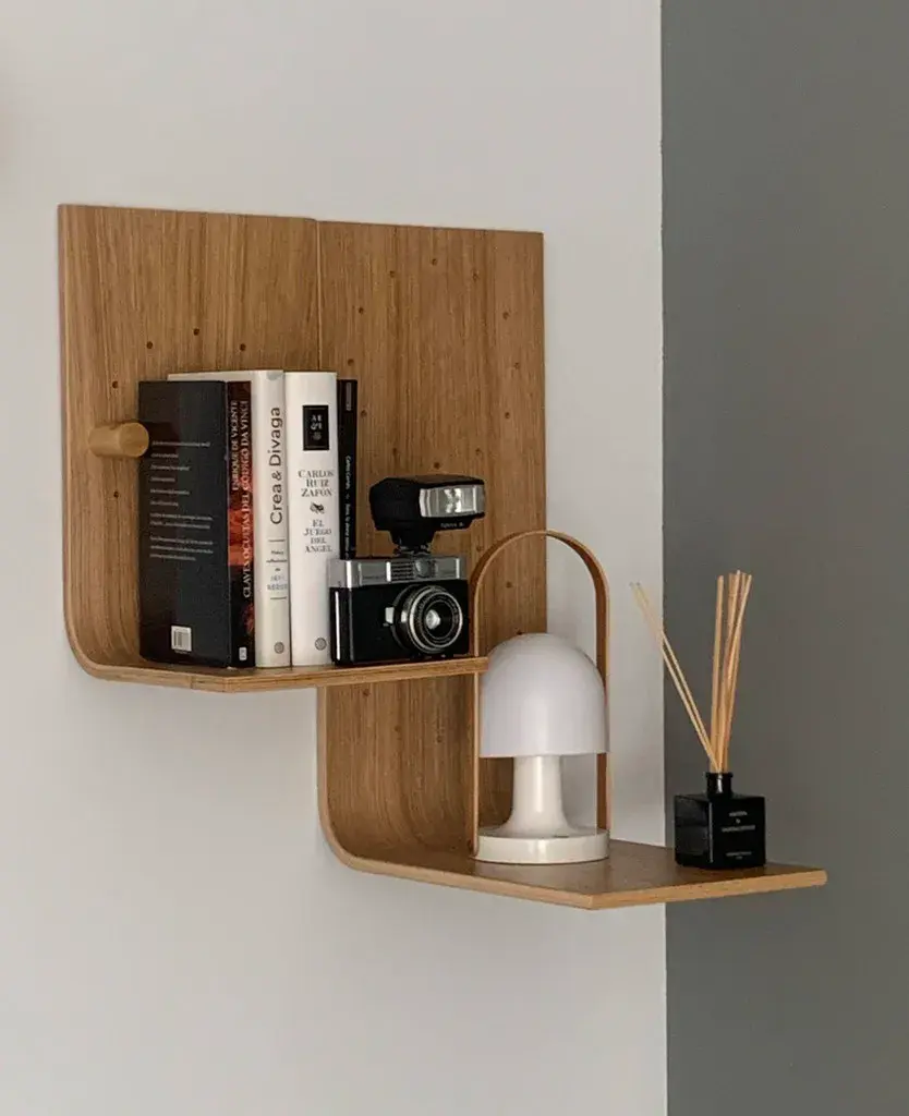 Brera Shelf: versatile and elegant Design for modern spaces.Inspired by Milan’s artistic district, the Brera Shelf combines sophistication and practicality in a single piece. Designed by Banzai Turba Studio in Barcelona, this elegant floating shelf is crafted from curved plywood, offering a dynamic and multifunctional solution for modern homes.Whether used individually or paired together, the Brera Shelf adapts seamlessly to your needs. Its innovative design allows you to transform it into a stylish bookshelf, a coat rack, or even a bike rack with leather protection for the frame.Available in Walnut, Oak, and White finishes, the Brera Shelf enhances your space with its minimalist aesthetic and versatile functionality. Designed in Spain, inspired by Italian elegance.Our collection of wall shelves is the perfect solution for organizing and displaying your books, photos, keepsakes, and more. Our shelves are available in a variety of sizes, shapes, and styles to match any decor. You can use them individually or create a modular solution . Floating Shelves Made of high-quality materials, our shelves are durable and easy to install.
