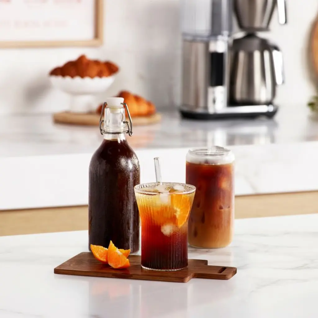 Brew 12 cups of coffee that meet the exacting standards of the Specialty Coffee Association (SCA) with the press of a button. This coffee maker automatically adjusts the water temperature and brew time to the precise brewing recommendations of the SCA. Select one-button brew or cold brew options or use the custom setting to fine tune temperature, water flow rate, and "bloom" time of the grounds. Decor-friendly in brushed stainless steel, the coffee maker features a glass carafe and can accommodate both cone and flat-bottom coffee filters.