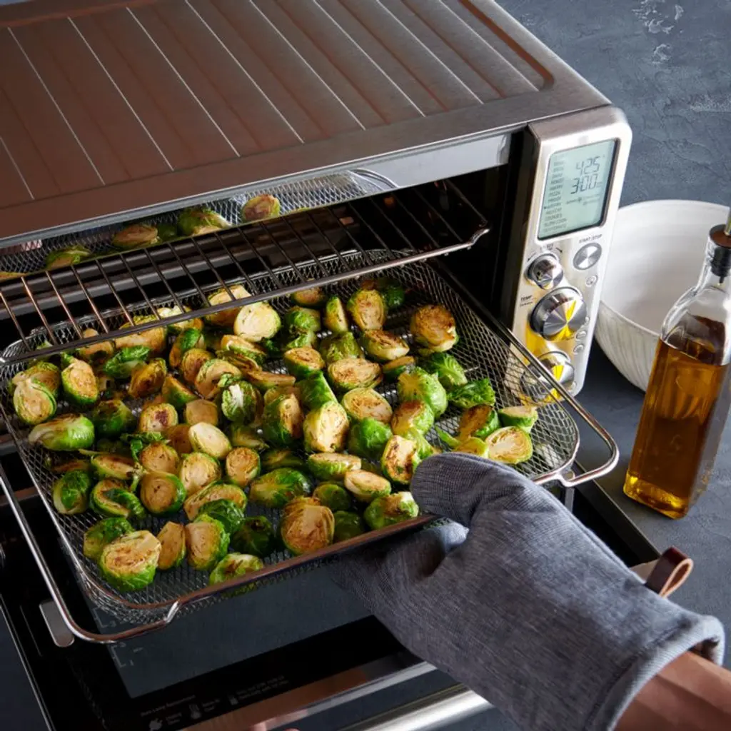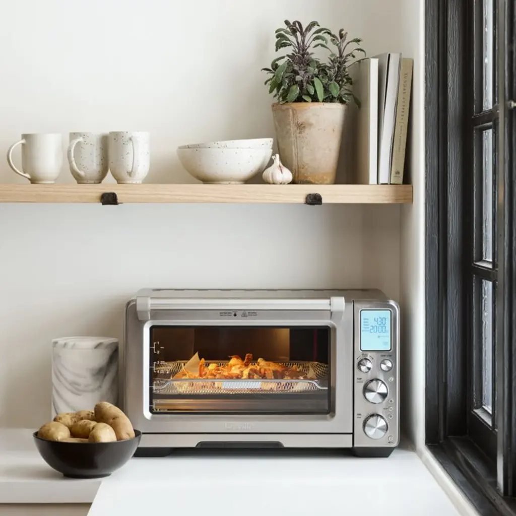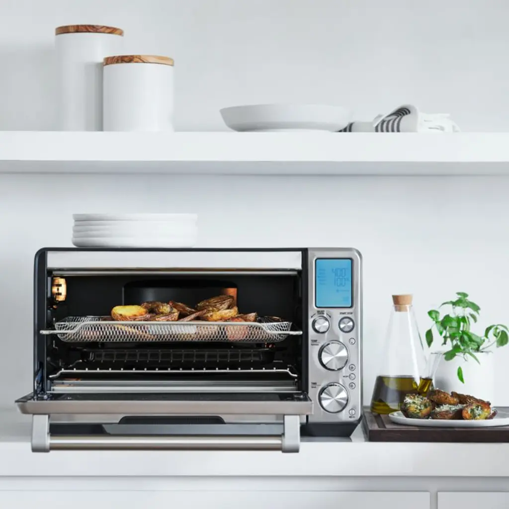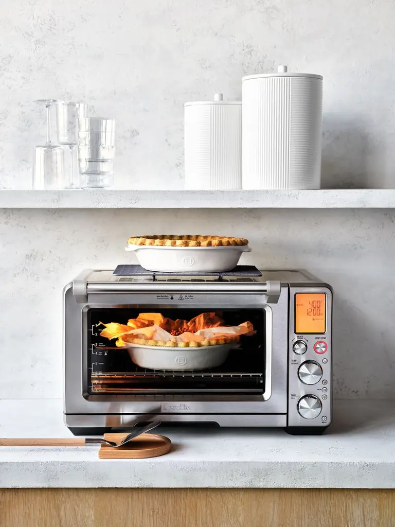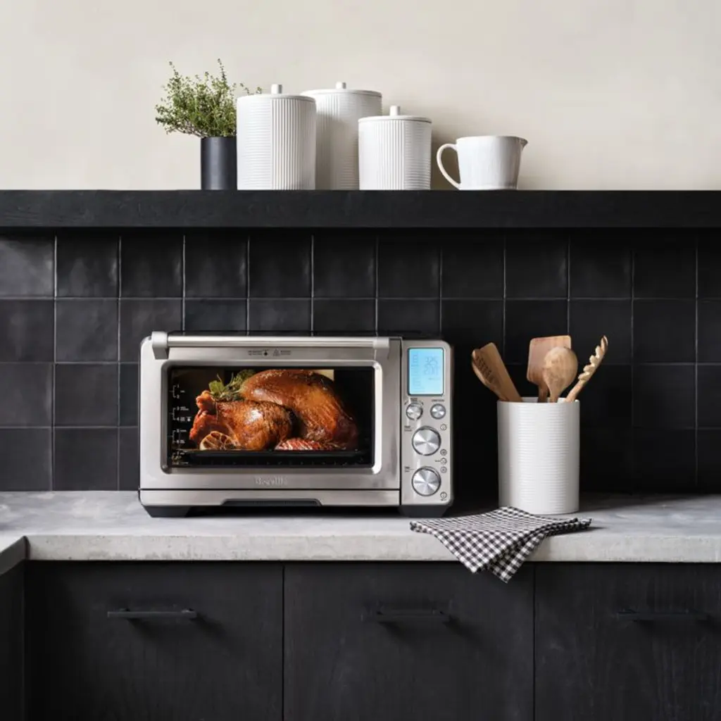 This countertop oven does it all, roasting a 14-pound turkey, cooking up a sheet pan of cookies, frying up crispy French fries and even dehydrating a batch of farmer's market surplus. In fact, there are 13 preset functions for toast, bagel, broil, bake, roast, warm, pizza, proof, air fry, reheat, cookies, slow cook and dehydrate. The oven does its magic using super convection, circulating a larger volume of air to ensure fast and even heat distribution. Element IQ precise temperature control technology ensures perfect results by moving where it's needed the most.Need help choosing? View our Breville Smart Ovens comparison chart.View all Breville products