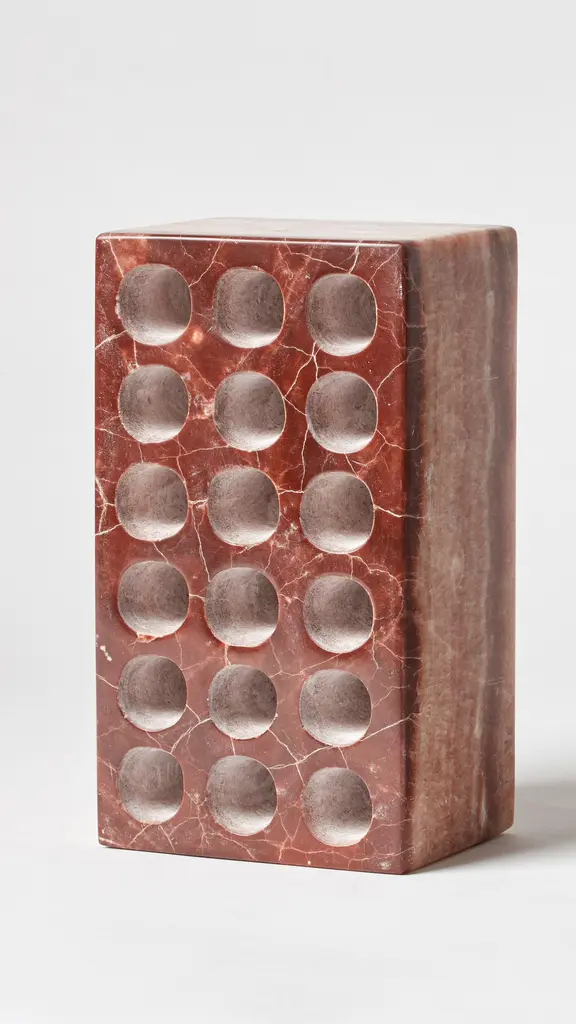 BRICK by RF StudioDimensions: W 12.5 D 9 x H 23 cm Materials: Andes StonesAlso Available: Other finishes available.The brick is a generic constructive element that constitutes part of the urban imaginary. In Peru, moreover, its image is linked to the phenomenon of migration from the countryside to the capital that began in the 1940s and involved new constructions of collective space on the outskirts of Lima, new urban centres in the different regions of the country and new forms of self-construction of housing. Based on the concept of constructive material, Bricks suggests the question of whether there is continuity between the materiality of the natural territory and the materiality of the contemporary urban habitat; and whether it is possible to recover the relationship with the diversity and particularity of each of the ecosystems we inhabit. The pieces pose the fragile balance between the processes of material transformation within nature and the systems of production, extraction and construction of our society.ESTUDIO RF is located in Lima, Peru. We are dedicated to the research of the contemporary habitat and natural environments in the Peruvian context, seeking to dissolve established limits between them. Our multidisciplinary team is conformed by visual artists, architects, traditional artisans, performers, designers, actors and writers. We regard art as an open field that functions like a hub that establishes new relationships between nature and human activity.We aim to rebuild the continuity between natural landscape, art and architecture by reconnecting the current urban condition with the bodily experience of being free in the wilderness. We acknowledge fluidity and non-definition of the landscape; a wild and dynamic setting were everything coexists without visible hierarchy or law.In opposition, the urban landscape is defined by social codification, segregation and segmentation of space. The values of the global market and technological modernity are creating distance and alienation in everyday life.Faced with this, we return to the heterogeneous, through natural ecosystems, to raw materials, to organic processes and to traditional local craft; we bring to light its real value, and reestablish contact between these elements and the body.We consider the human being and society not as nucleus, but as part of an ecosystem; a big community of living organisms. In a society governed by images, noise, artificial light and industrial materials, we find solace and intimacy in the darkness of the wild environment that meet us through the opaque and warm qualities of the natural shadows surrounding us.We create a balance between visible and palpable, between sound and silence, between industrial or digital production and natural or artisanal materials. Our goal, beyond ideologies or artistic intent and manifestos, is to reimagine the intimate acts of daily life as a potential means for future transformation.