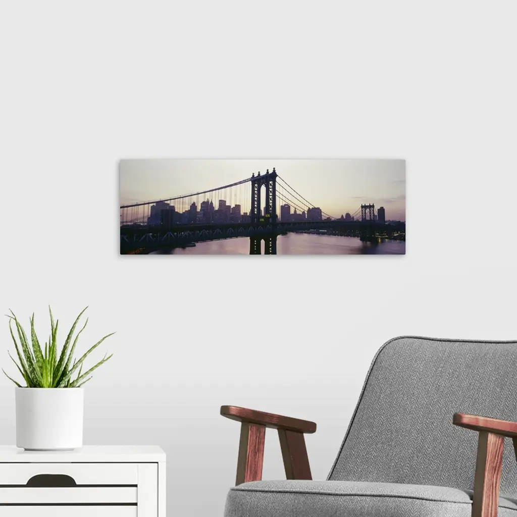 Bridge across a river, Manhattan Bridge, East River, Manhattan, New York City, New York State wall art for home and office decor. Discover canvas art prints, photos, mural, big canvas art and framed wall art in GreatBigCanvas.com's varied collections.