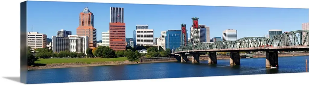 Bridge across a river Willamette River Portland Oregon wall art for home and office decor. Discover canvas art prints, photos, mural, big canvas art and framed wall art in GreatBigCanvas.com's varied collections.