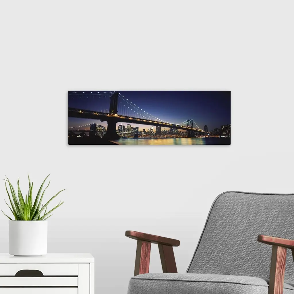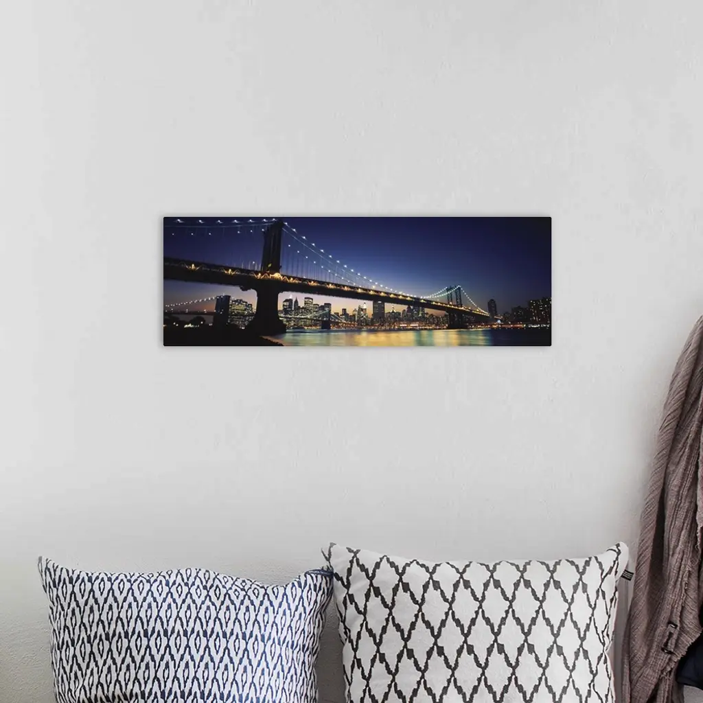 Bridge across the river, Manhattan Bridge, Lower Manhattan, New York City, New York State wall art for home and office decor. Discover canvas art prints, photos, mural, big canvas art and framed wall art in GreatBigCanvas.com's varied collections.