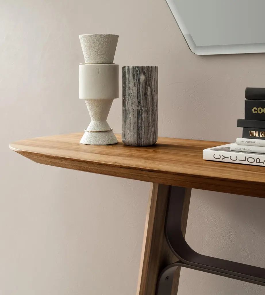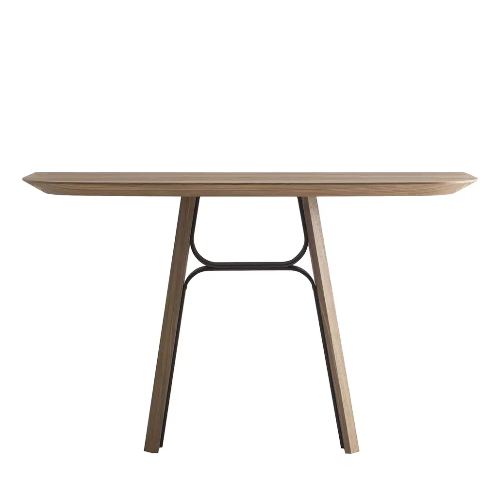 Bridge Walnut Console by Morica DesignDimensions: D 45 x W 120 x H 75 cm.Materials: Canaletto walnut, Dark Burnished metal.Available in Canaletto Walnut, Laguna Oak, or Oak wood. Please contact us.Available in Dark Burnished or Champagne metal colors.Console with legs in MDF in real wood veneer with calendered, epoxy powder-coated metal insert. Barrel-shaped top in 40mm real wood veneered and brushed MDF with 30° edge, hand-edged. To ensure the stability of the console, it is important that it is placed on a vertical surface, and we recommend fixing it to the wall with the two metal plates and screws provided.The spark of an idea began with three brothers, Moreno, Riccardo, and Carlo, and the desire to provide genuine Made in Italy design furniture, delivered to customer homes directly from the factory.We guarantee our customers a controlled, certified supply chain and an excellent service that makes it easy for their items to be delivered directly to their homes.We are a fresh organization, full of ideas with the desire to make the world a better place, to change the way we consume by providing beauty, sustainability, and reliable service!
