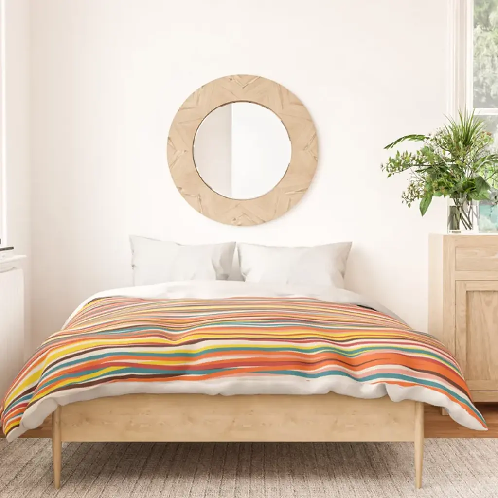 Bright Colorful Lines - Classic Abstract Minimal Retro Summer Style Stripes Duvet Cover