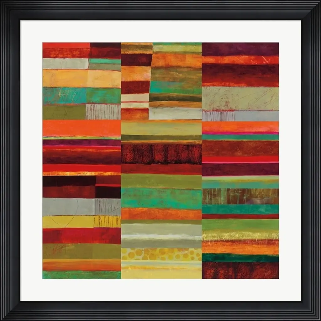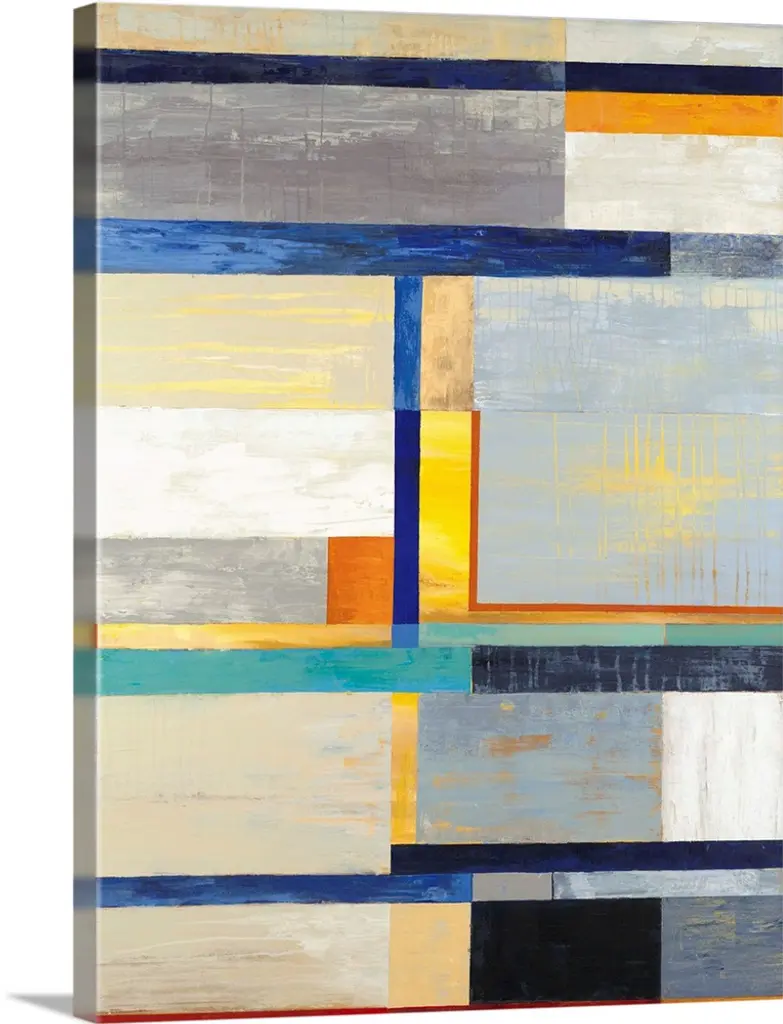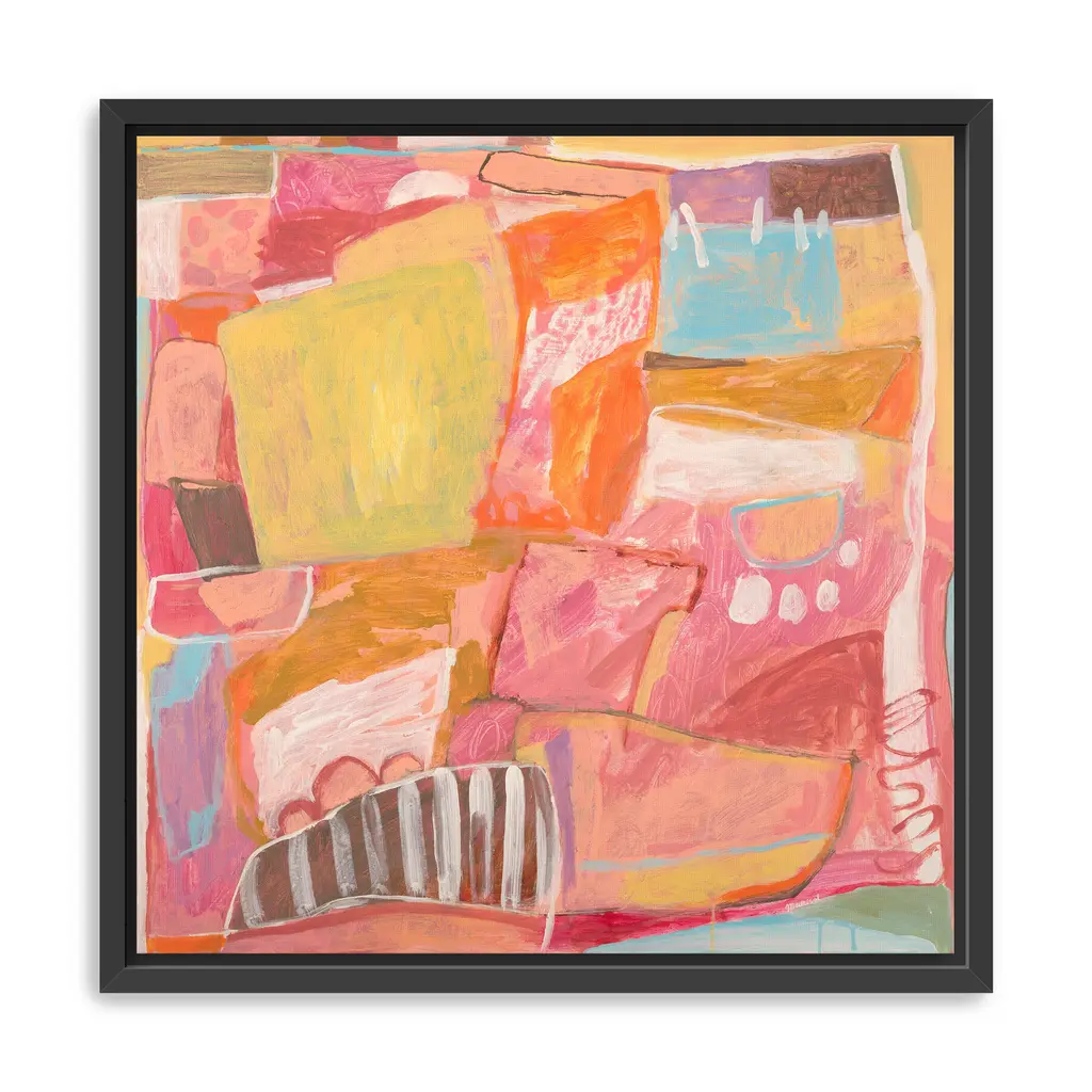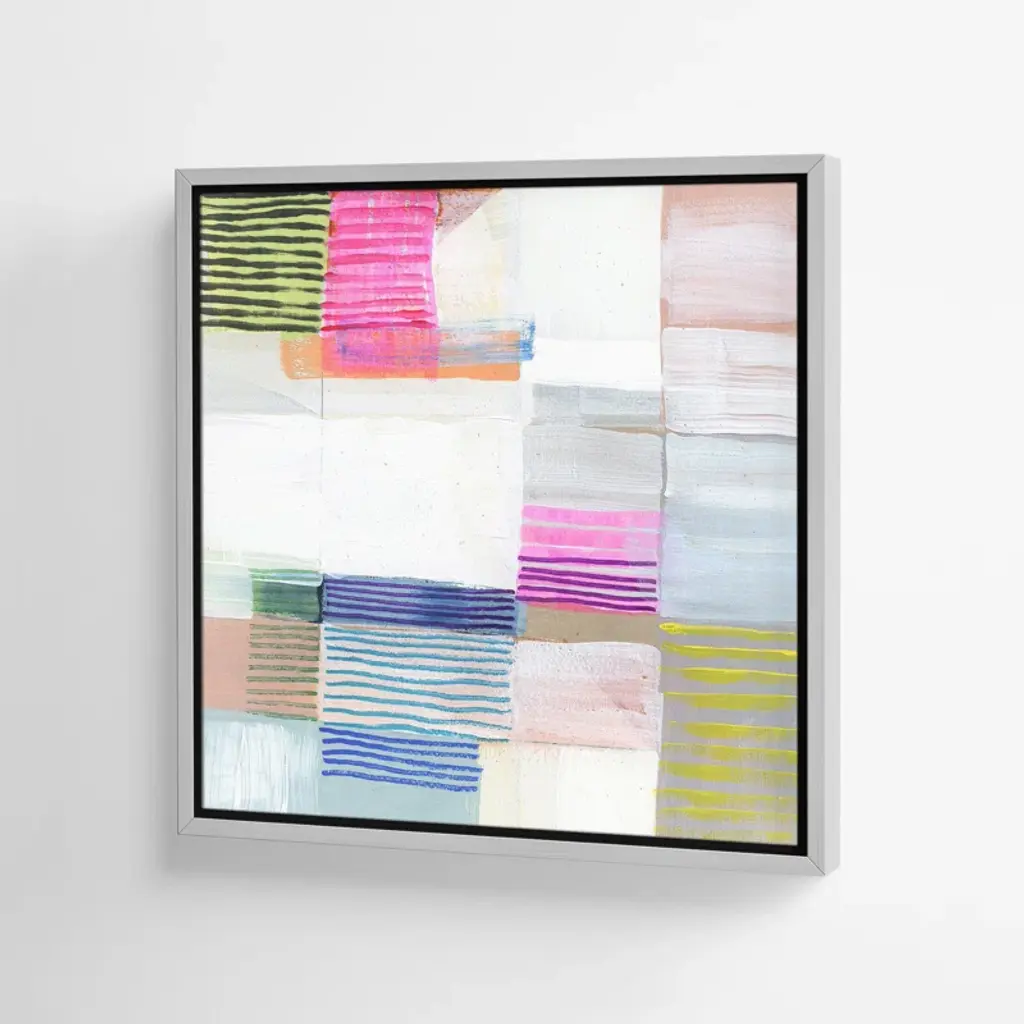With its array of bright colors and textures, this abstract wall art instantly brightens and enlivens spaces of all styles. Printed on acid-free cotton blend canvas for fade-resistant, long-lasting clarity, this archival fine art giclee print is created with gallery-quality inks. It's gallery-wrapped over FSC-certified pine wood stretcher bars and is accented by a solid wood floater frame. Hand-stretched and made to order in the USA, this wall art even comes with hanging hardware for easy and secure installation, straight out of the box. Plus, it's offered in a wide variety of size and frame color options.