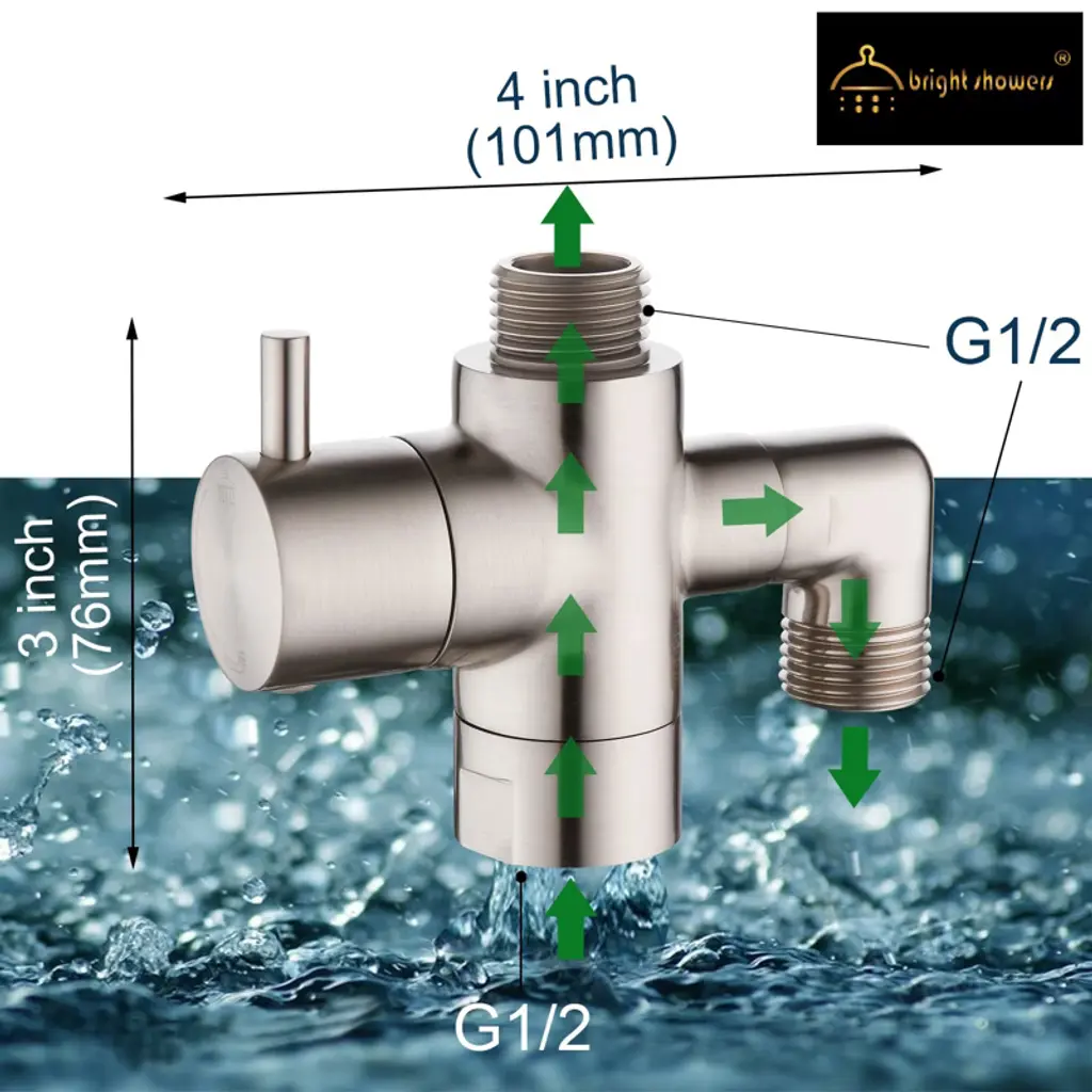Bright Showers Brass Shower Arm Diverter Valve For Hand Held Showerhead And Fixed Spray Head, 3-way Shower Head Diverter Valve, Brushed Nickel