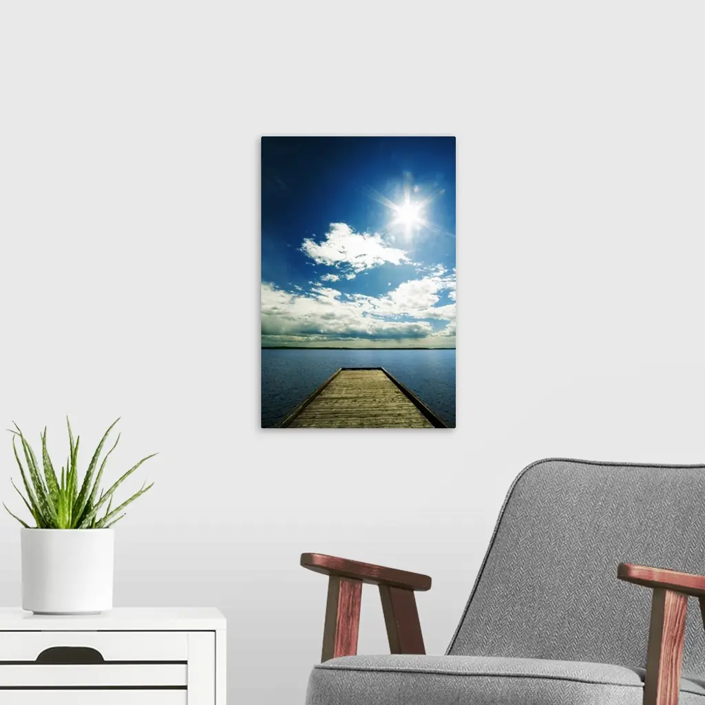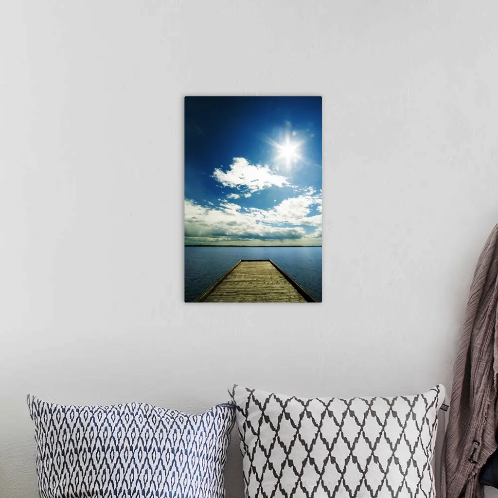 Bright Sun Over Dock On Lake wall art for home and office decor. Discover canvas art prints, photos, mural, big canvas art and framed wall art in GreatBigCanvas.com's varied collections.
