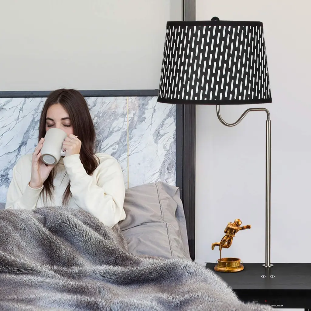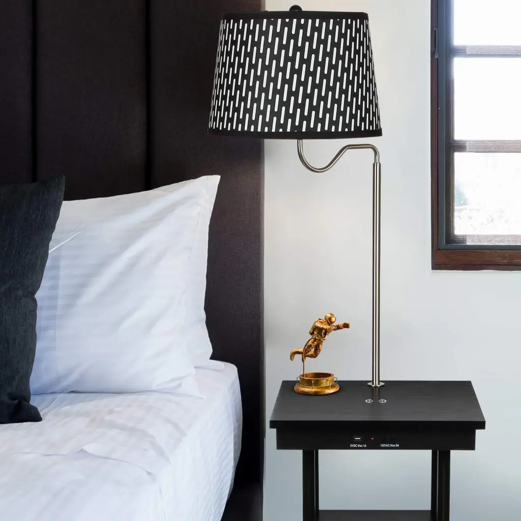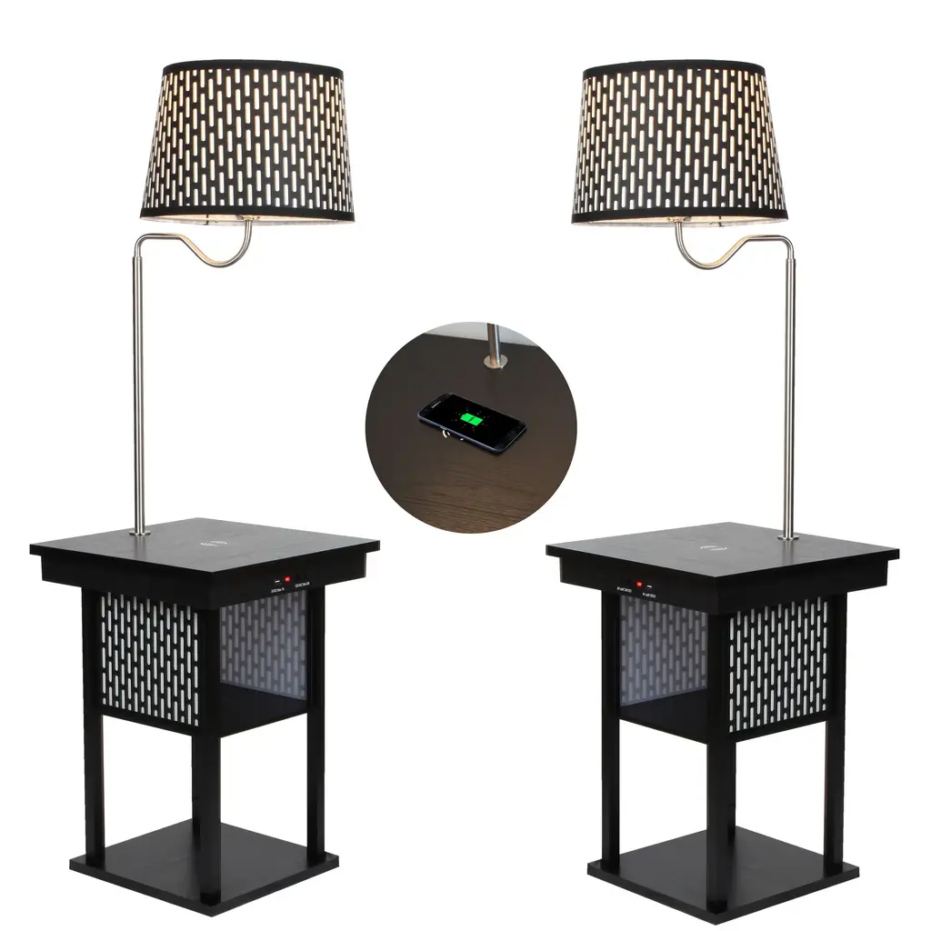 Brightech Madison 56 In. Classic Black Modern Led Bedside Table Lamp With Fabric Drum Shade And Wireless Charging Pad (2-Pack) - Black