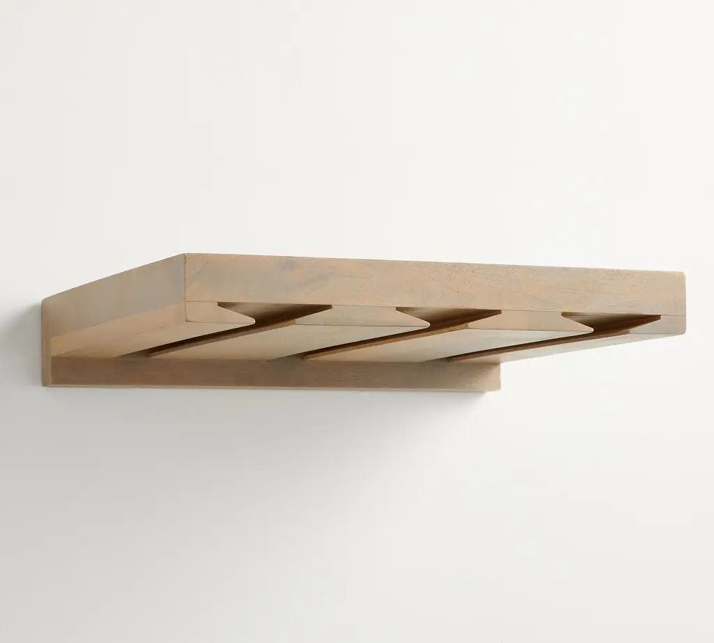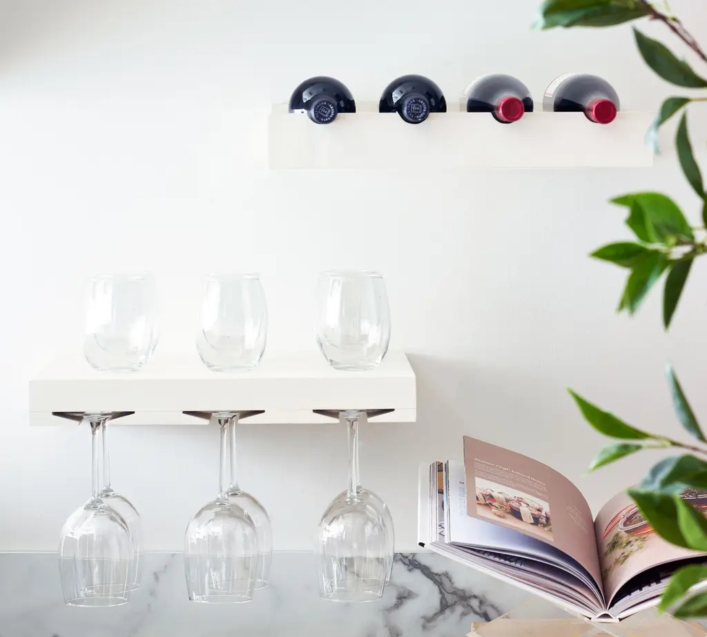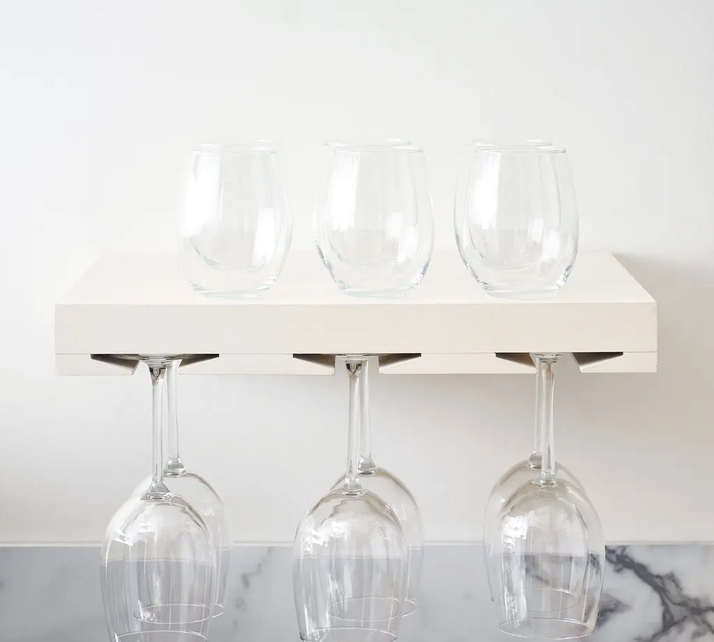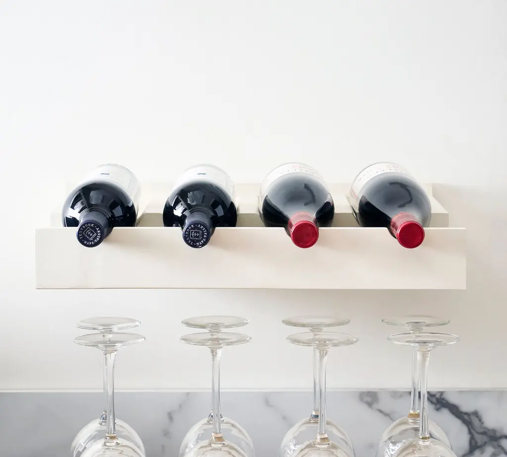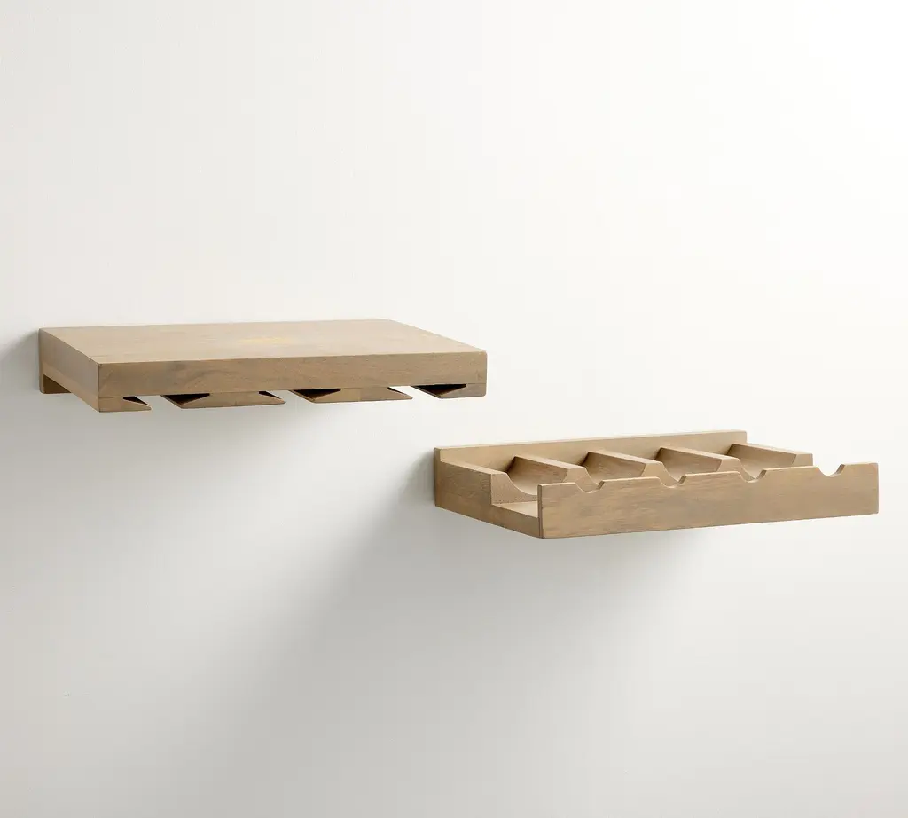 Use this shelf to keep wine service organized for every planned and impromptu get together. It comes in your choice of a casual gray wash or crisp white for an easy complement to any entertaining space.