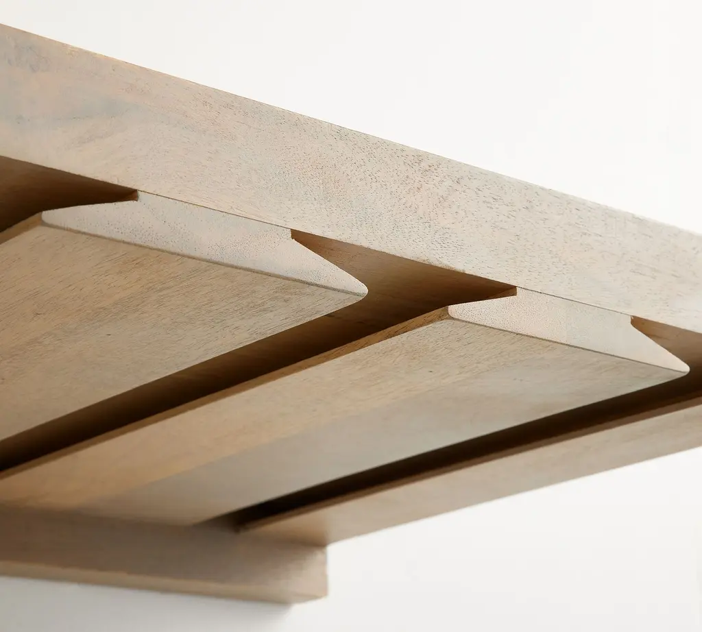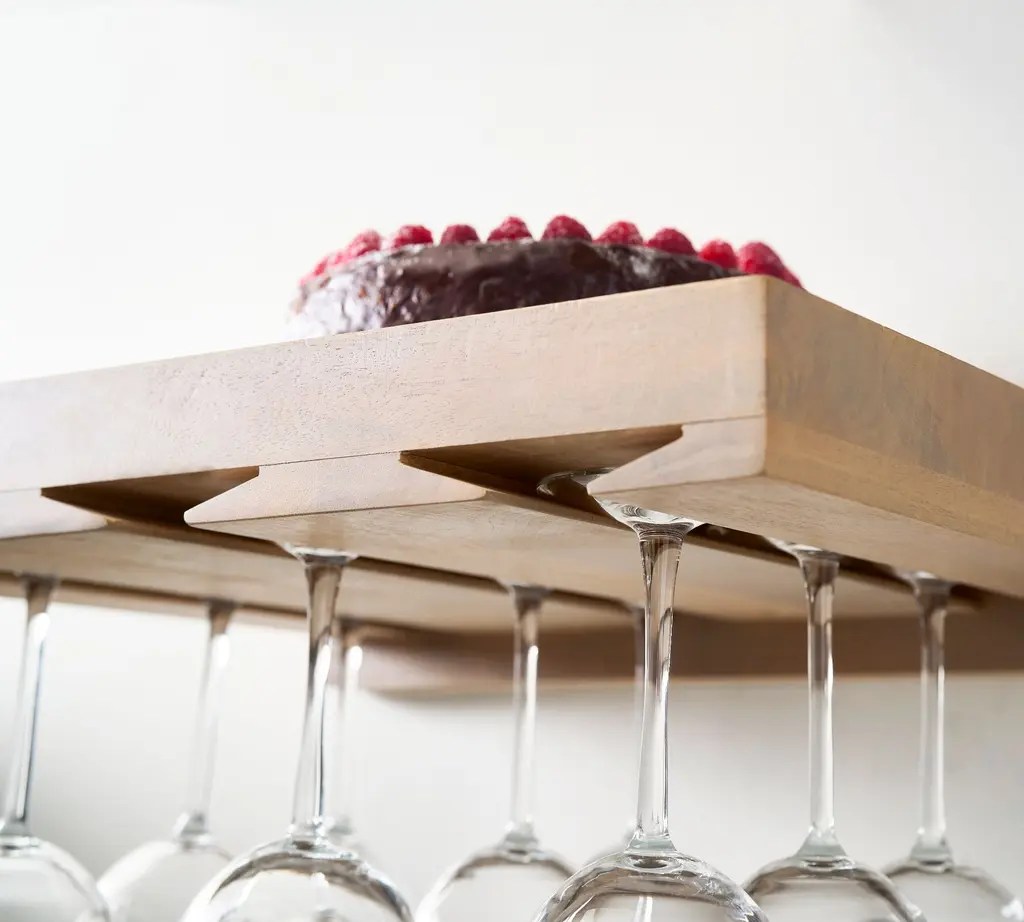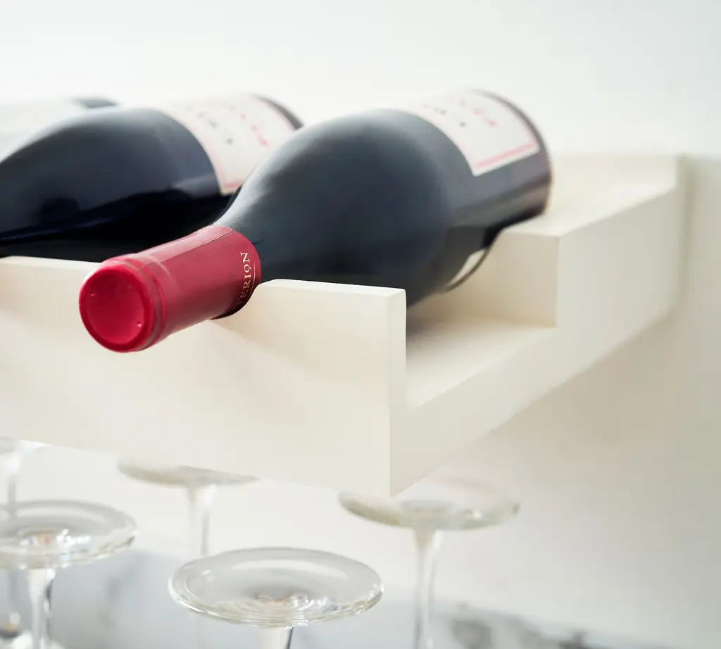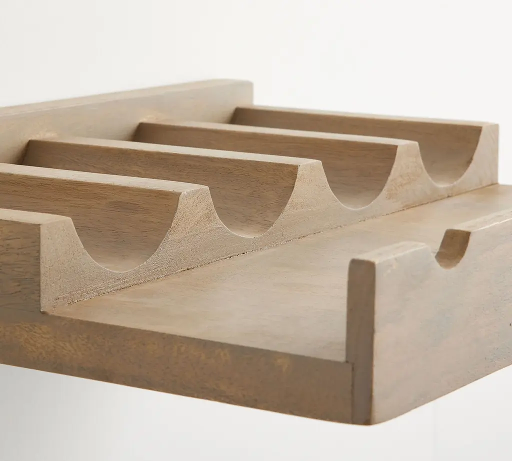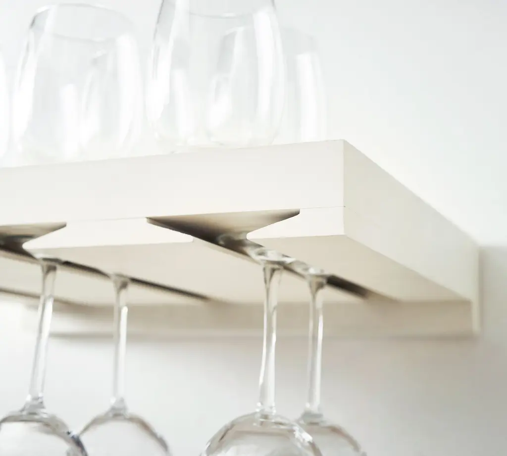 Use this shelf to keep wine service organized for every planned and impromptu get together. It comes in your choice of a casual gray wash or crisp white for an easy complement to any entertaining space.