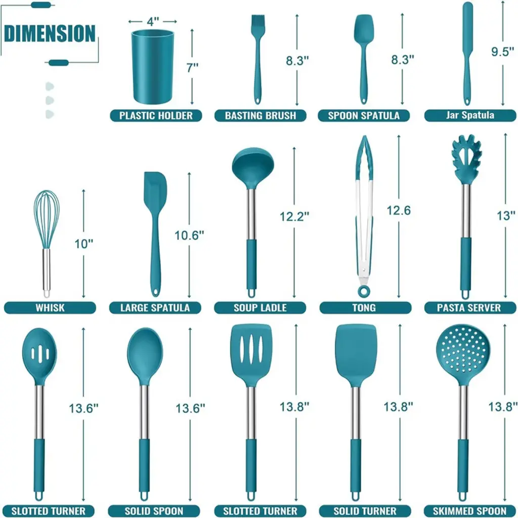 Brinjoy 14-piece Silicone Kitchen Utensil Set - Heat Resistant Non-scratch Cooking Tools With Stand,blue