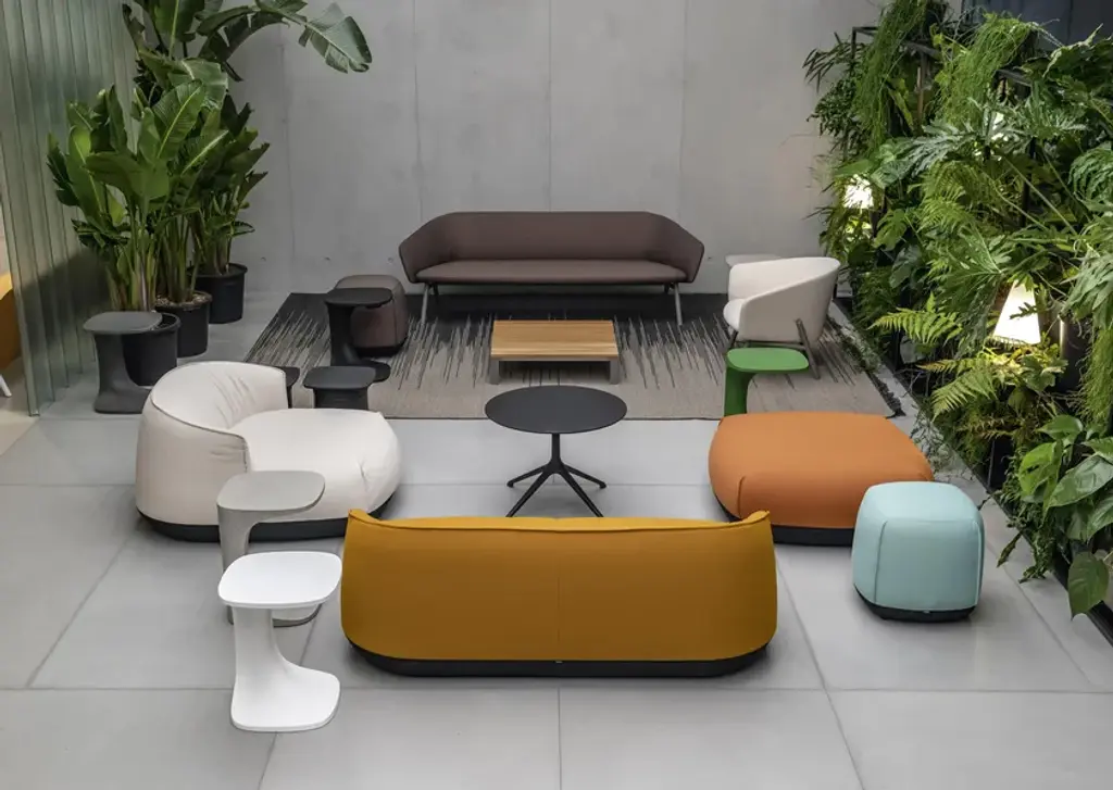Brioni Up is an armchair designed by the duo Lucidi Pevere.Brioni is a collection of poufs, lounge armchairs and daybeds named after a famous archipelago in the Adriatic Sea. They resemble small islands rising out of the sea. Their design features a dark band on the lower part that prevents direct contact between the ground and the upholstery. The upholstery is made of Sunbrella® fabric: stain-resistant, breathable, resistant to UV rays and water-repellent. They are soft and comfortable thanks to flexible polyester padding and plastic slats, enclosed in water-resistant housing. Light and easy to move, they can be used to create countless compositions outdoors, experimenting with different shapes, colours and sizes.Initially designed for outdoor use, the six items in the Brioni collection have been redesigned by LucidiPevere for use in homes: the entire surface of the seat is now covered in fabric or leather, without the dark lower band that prevented contact with the ground. It has a zip, an aesthetic and functional detail, like the previous version, as well as soft polyester padding with plastic slats. Light and easy to move, the poufs are perfect when positioned next to the sofa, whereas the armchairs and daybeds are comfortable and versatile seats that invite you to relax.Designed by the duo LucidiPevere for outdoor use, and later redesigned in an indoor version, the collection is now enriched with new versions. A lounge, daybed and pouf accompany the twoseater and threeseater chairs and BrioniUp, an advanced version of the armchair and sofa with a high seat and backs, ideal for use in the contract sector. Metal feet, ten centimetres long, are available on request to raise the height of the chair.