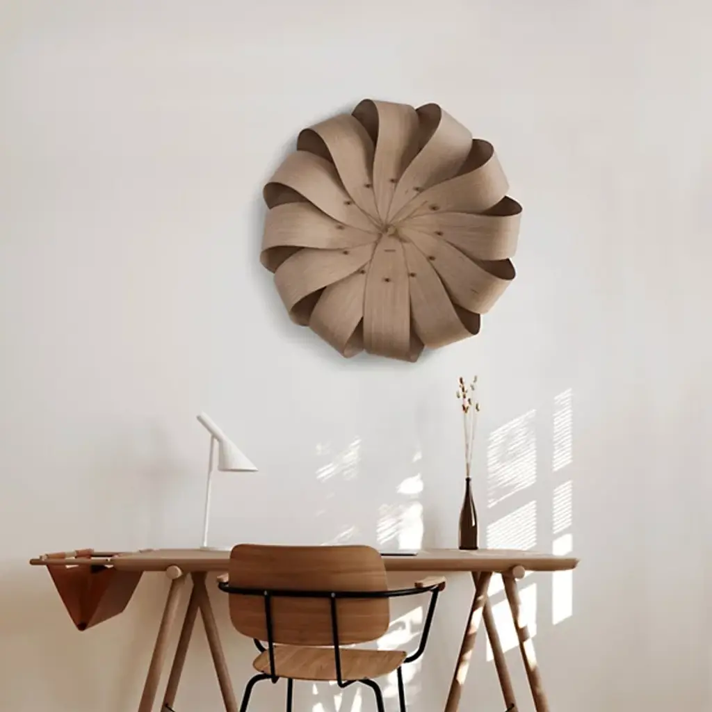 Timekeeping with an emphasis! The Brisa XL Clock from Nomon is a horological feat of design prowess. This extra-large clock is steeped in the longstanding Spanish tradition of artisanal craft. The Brisa XL is the end-result of intentional visionary work by Andres Martinez. Walnut wood serves as the primary material for the body of the clock. The wood has been carefully shaped into a floral, ribbon-like form that gives the timepiece the appearance of malleability. Its delicate features notwithstanding, the clock is incredibly durable. The raised dial demarcations are elegant and subtle. The Brisa XL takes time from being a reminder to a sought-after pleasure.