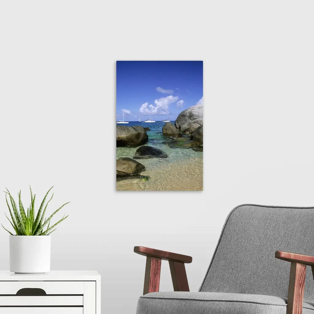 British Virgin Islands, Virgin Gorda, Boulder Rocks And Boats In The Choppy Waters