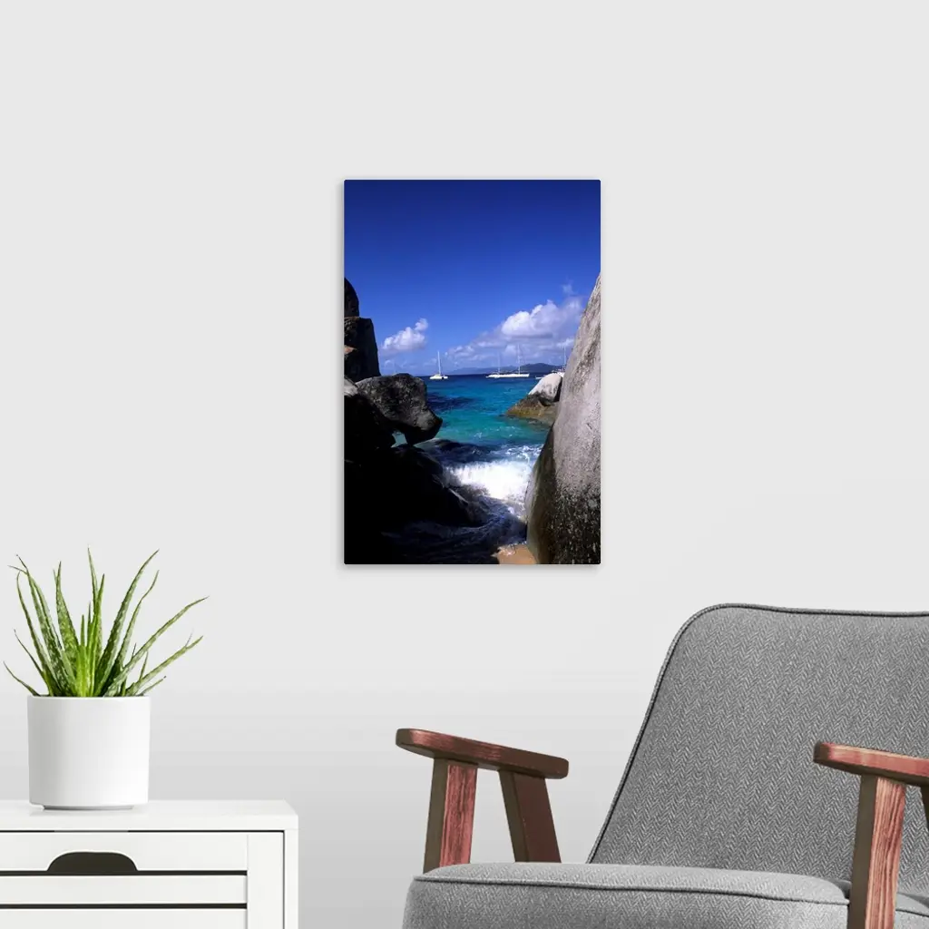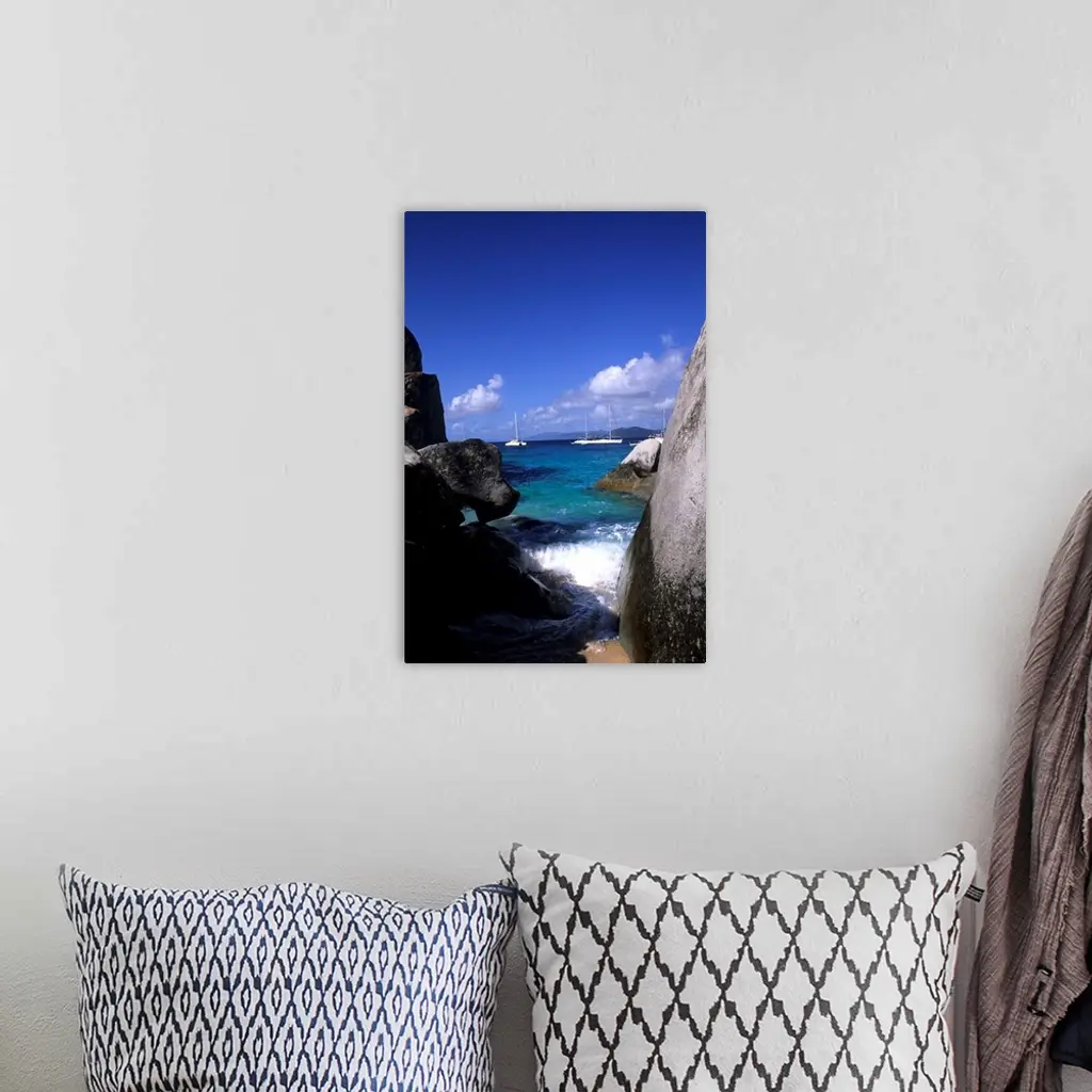 British Virgin Islands, Virgin Gorda, Boulder Rocks And Boats In The Choppy Waters