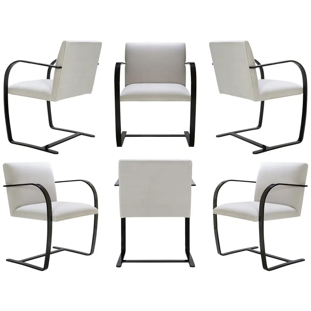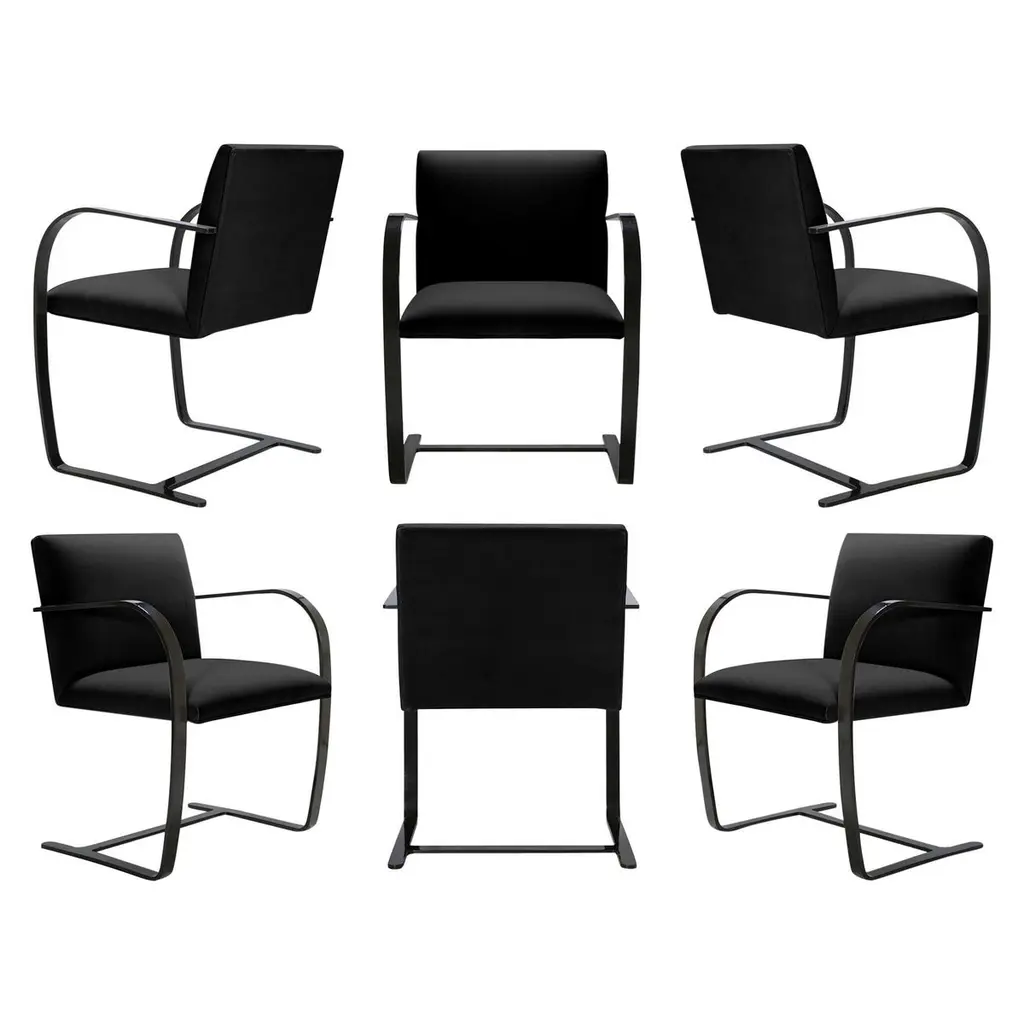 Brno Flat-Bar Chairs In Fog Mohair By Ludwig Mies Van Der Rohe For Knoll - Set Of 6