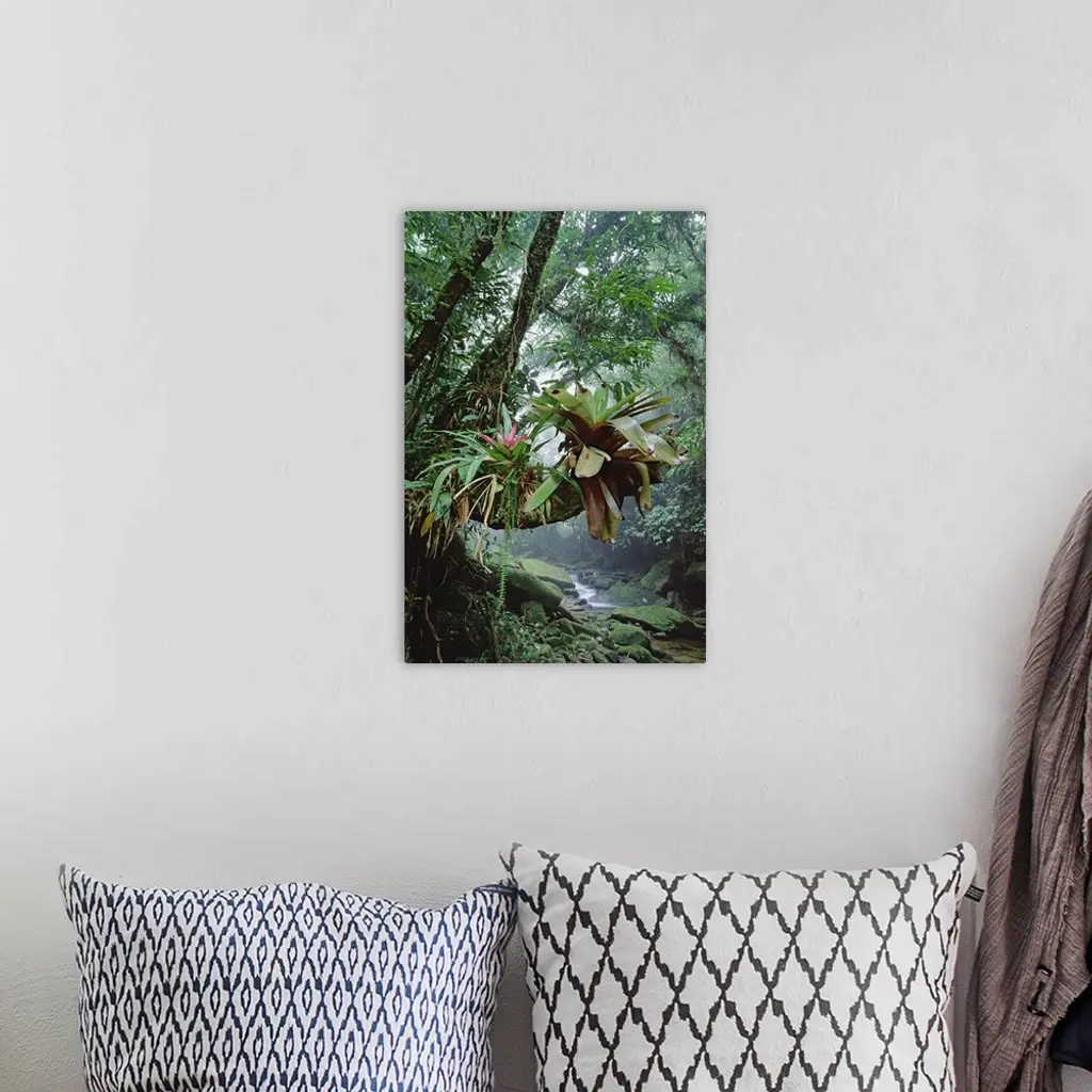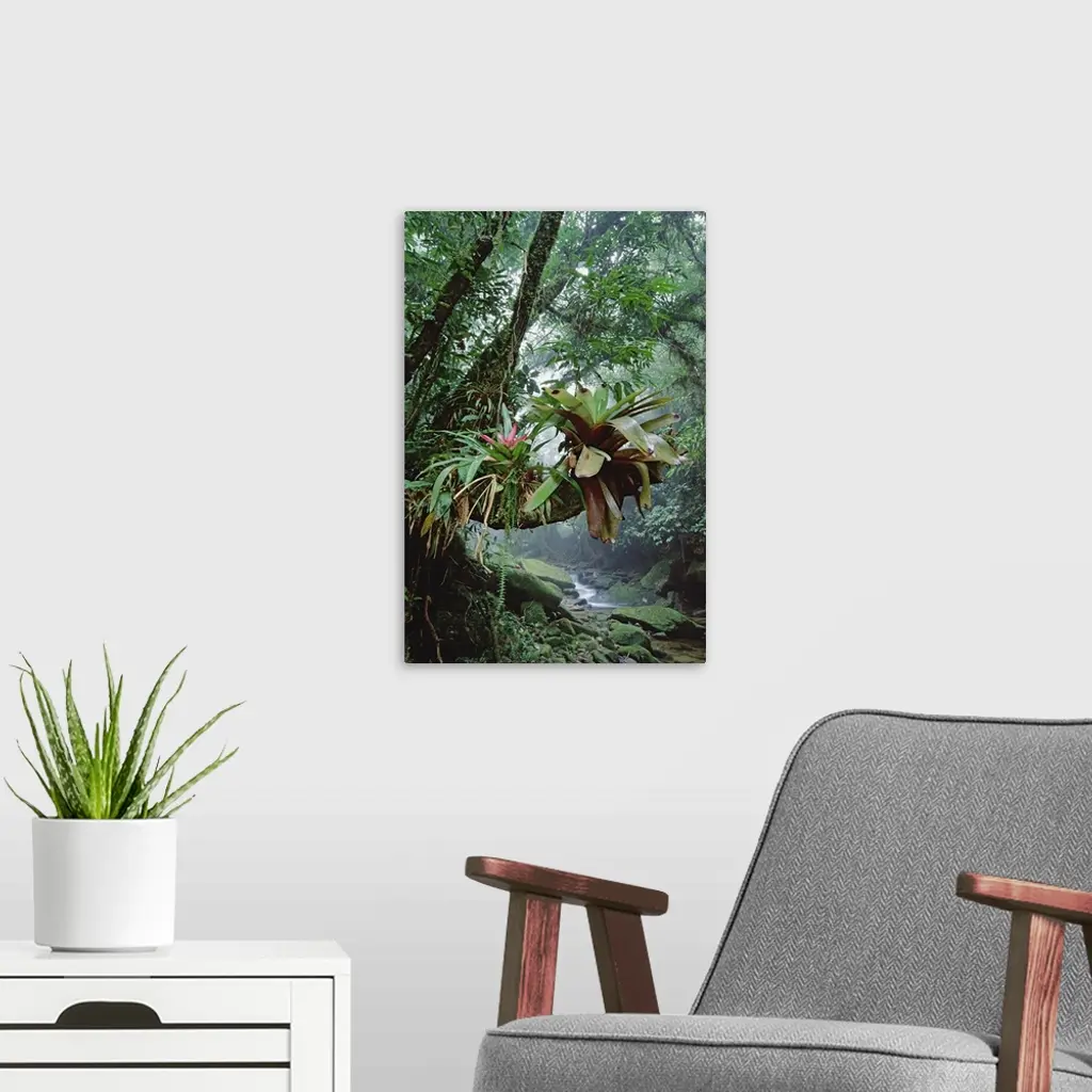Bromeliads growing in trees along stream in Bocaina National Park, Atlantic Forest, Brazil