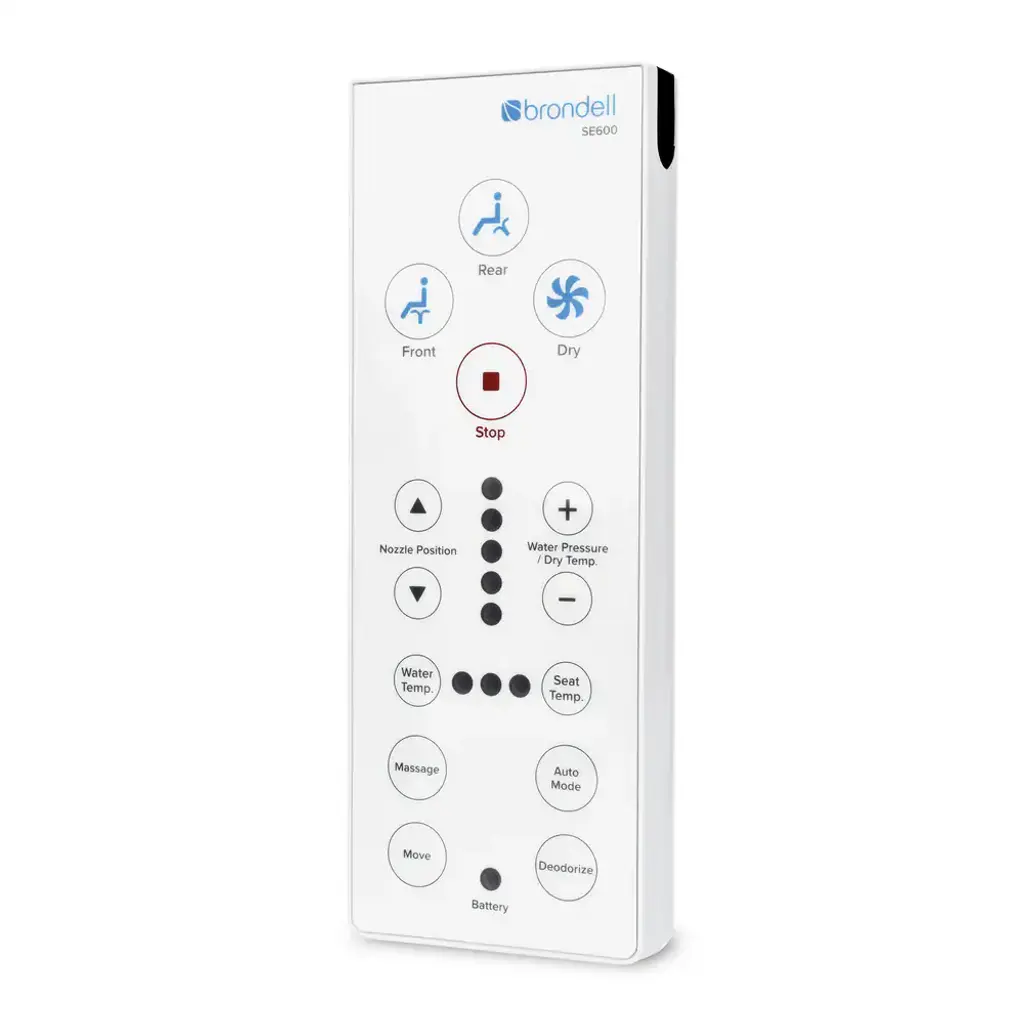 Join the Wash Don't Wipe Revolution with the Swash SE600 advanced bidet toilet seat. The Swash SE600 is packed with features at an affordable price. Made with the highest quality components and backed by Brondell's industry-leading customer service, the Swash SE600 bidet toilet seat easily installs on your existing toilet. The Swash SE600 bidet seat has all the features you need to create a personalized experience. Turn your toilet into a toilet of tomorrow today!- Positionable stainless-steel nozzle, with rear and front wash settings- Warm air dryer and deodorizer- Nozzle oscillation and gentle massage pulse- Ergonomic heated seat with illuminating cool blue nightlight- Wireless remote control with one-touch auto mode Features:Stainless Steel Nozzle: Stainless steel resists soiling and bacterial contamination for enhanced hygiene.Posterior and Feminine Warm Water Wash: Experience the ultimate in clean with adjustable temperature, position, pressure, massage, and oscillation settings.Positionable Nozzle: The nozzle has five different positions to ensure the most comfortable and complete wash.Wireless Remote Control: The intuitive remote control allows the user to easily select functions and settingsAdjustable Water Temperature and Pressure: Front, Rear and Strong wash modes have four available water temperature settings, and five water pressure settings.Massage: When activated, the water pressure automatically increases and decreases to provide a pulsating, cleaning spray.Warm Air Dryer: Includes adjustable temperature with five levels for a hands-free experience and toilet paper reduction - even elimination.Nozzle Oscillation: The Move function provides a massaging, oscillating cleanse during the wash cycle ensuring a thorough and comfortable wash.Auto Function: Activates a preset for a rear wash cycle followed by a drying cycle.Ergonomic Heated Seat: With four temperature settings (High/Medium/Low/Off).Illuminating Nightlight: The cool blue hue of the nightlight means no more blinding lights during midnight trips to the bathroom.Gentle-Closing Seat and Lid: "Slam free" gentle-closing seat and lid are user friendly.Eco Mode: When activated, this function automatically lowers the water and seat temperature to one of two different settings.Deodorizer: The activated charcoal deodorizing filter eliminates odors at the source. It does not cover or mask odors, but eliminates them by removing air from the toilet bowl, passing it through the filter and expelling the clean air through the vent in the back of the Swash.