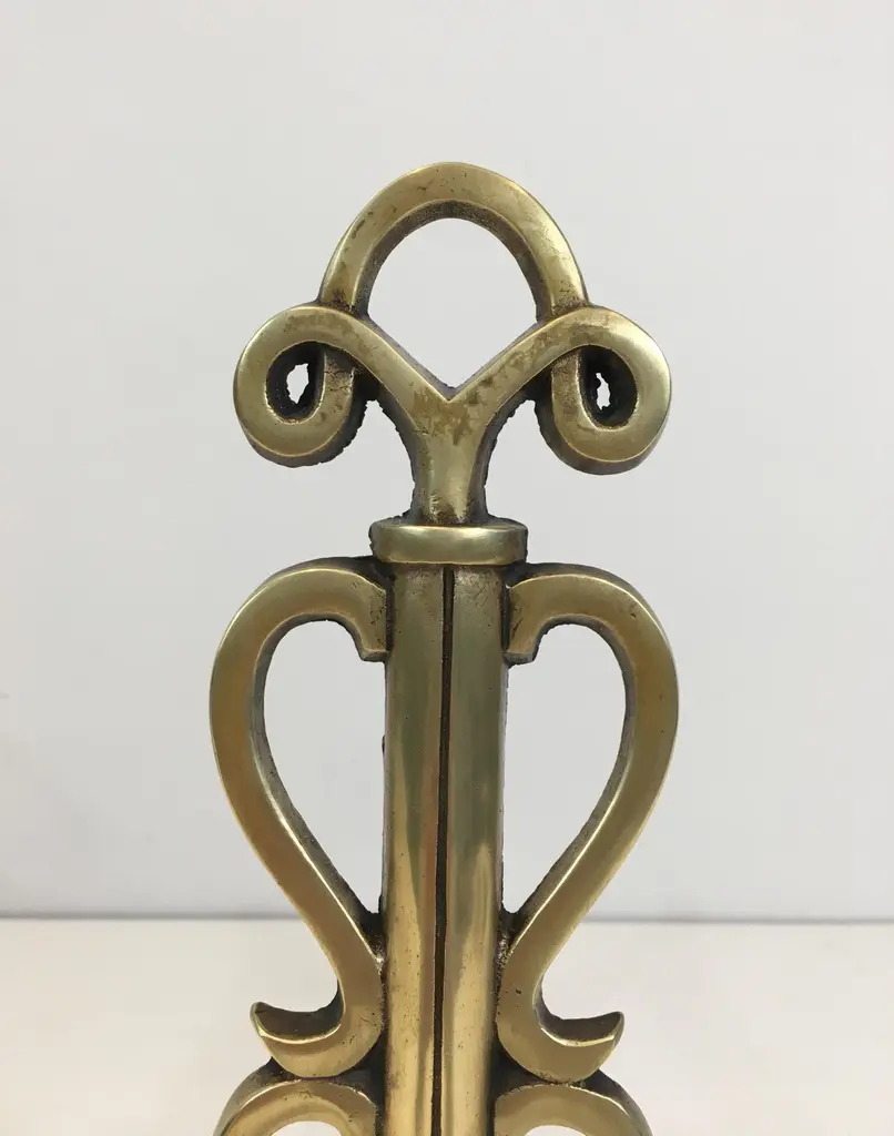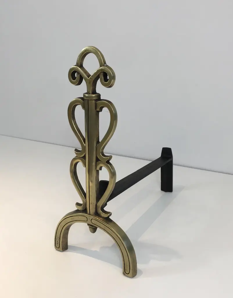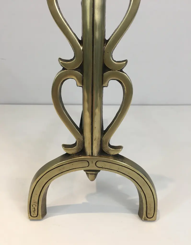 Bronze And Iron Andirons, Signed, French, Circa 1930