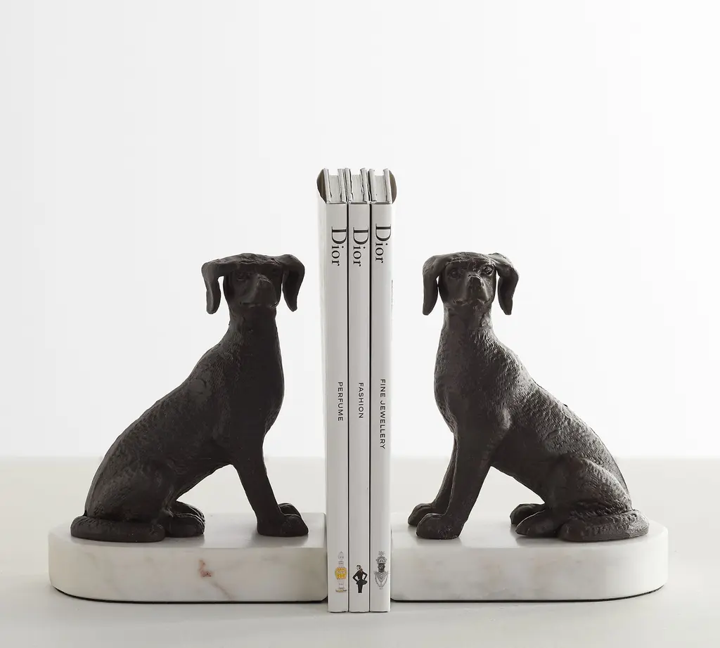 Add a dose of canine character to your collection of favorite volumes with our bookends set. A pair of dogs crafted of hand-cast bronze sit atop white marble bases, lending a look at once classic and country to your home office, bedroom or living room.