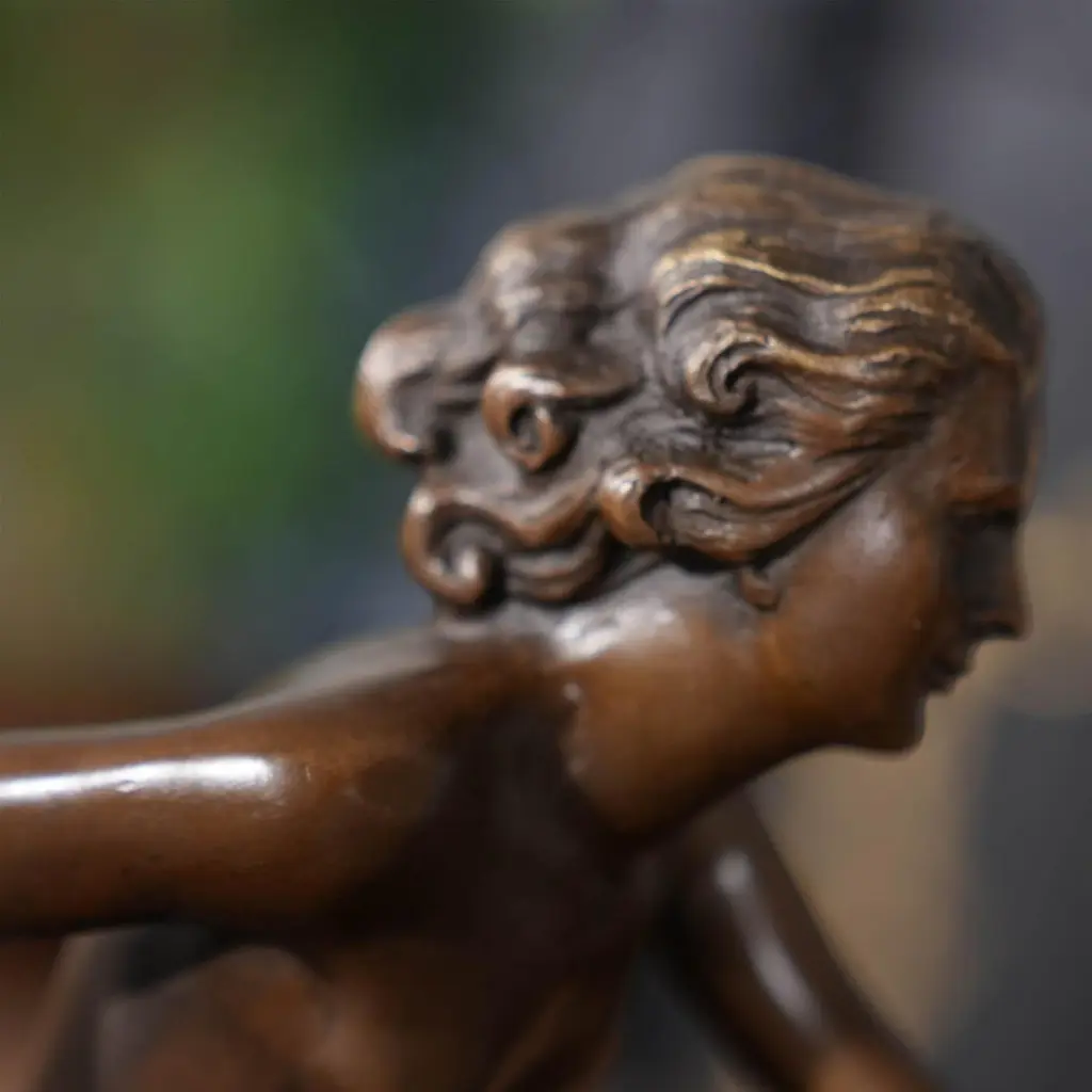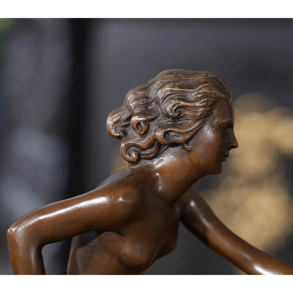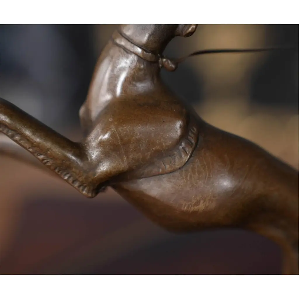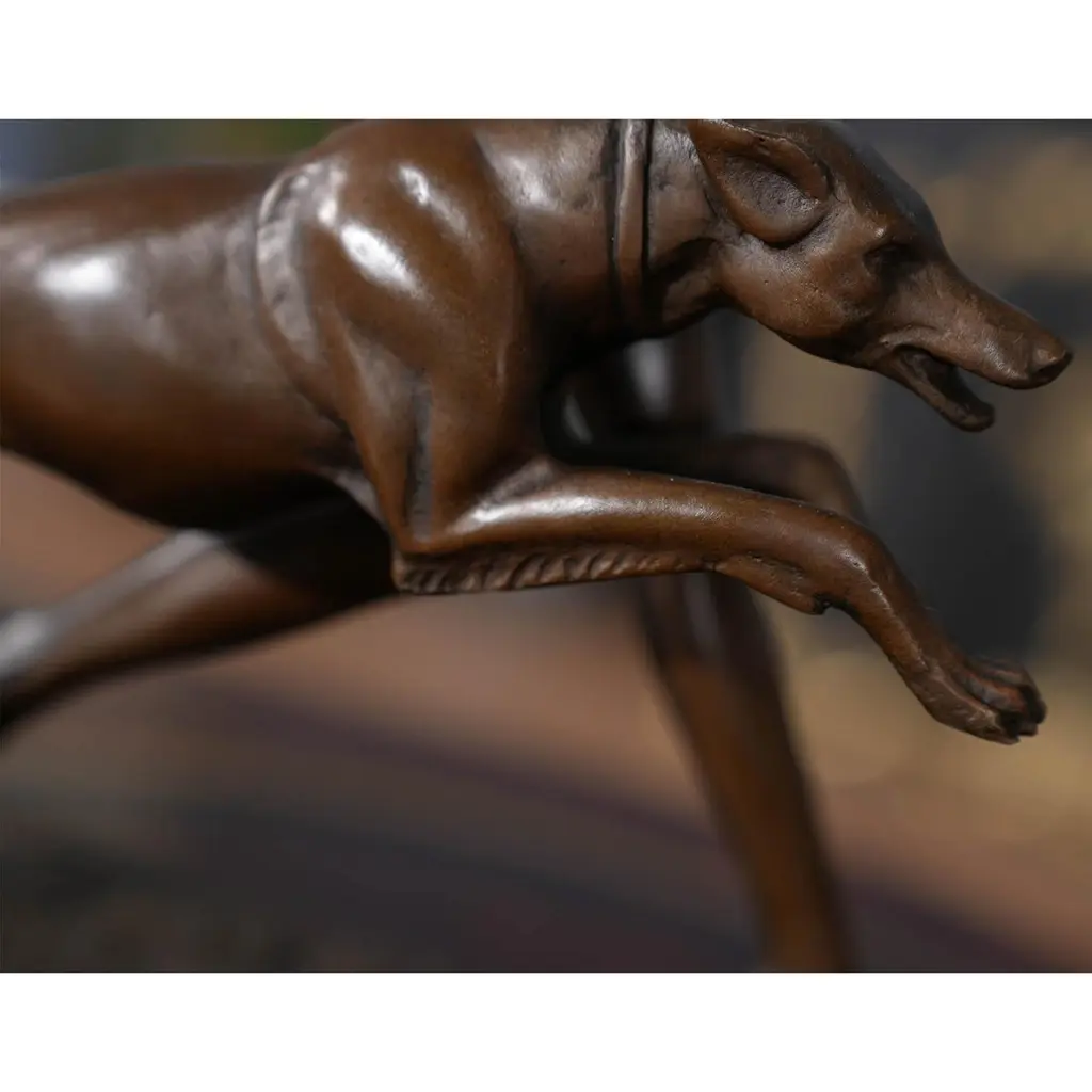 Graceful even when motionless the Bronze Girl with Dogs on Marble Base is a striking addition to any setting. Using traditional lost wax casting methods the Bronze Girl with with Dogs statue has hand chaised details added to give a high level of detail to the figure. The Girl with Dogs is then mounted on a solid marble base to lend it stability as well as an enduring appearance. The Bronze Girl with Dogs on Marble Base is finished in a multi stage, time consuming process requiring skilled and experienced artisans. The rich and varied shades of finish lend themselves to almost any decor, they appear especially striking when displayed in a well lit area.Item Measures Approximately 18 W x 6 D x 13 H