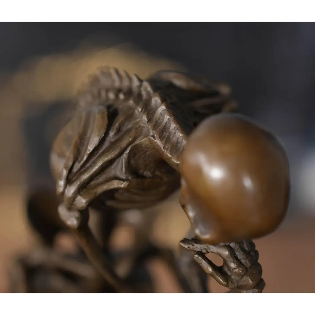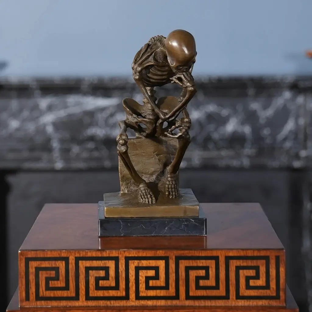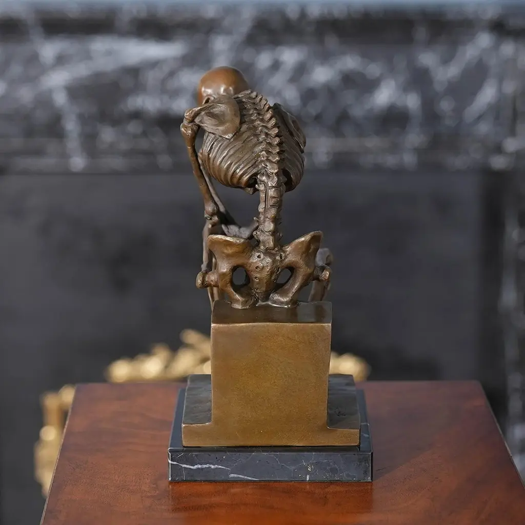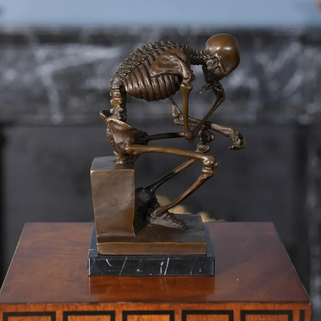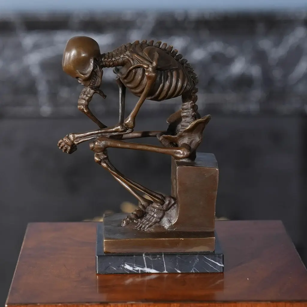 Bronze Skeleton Thinker On Marble Base